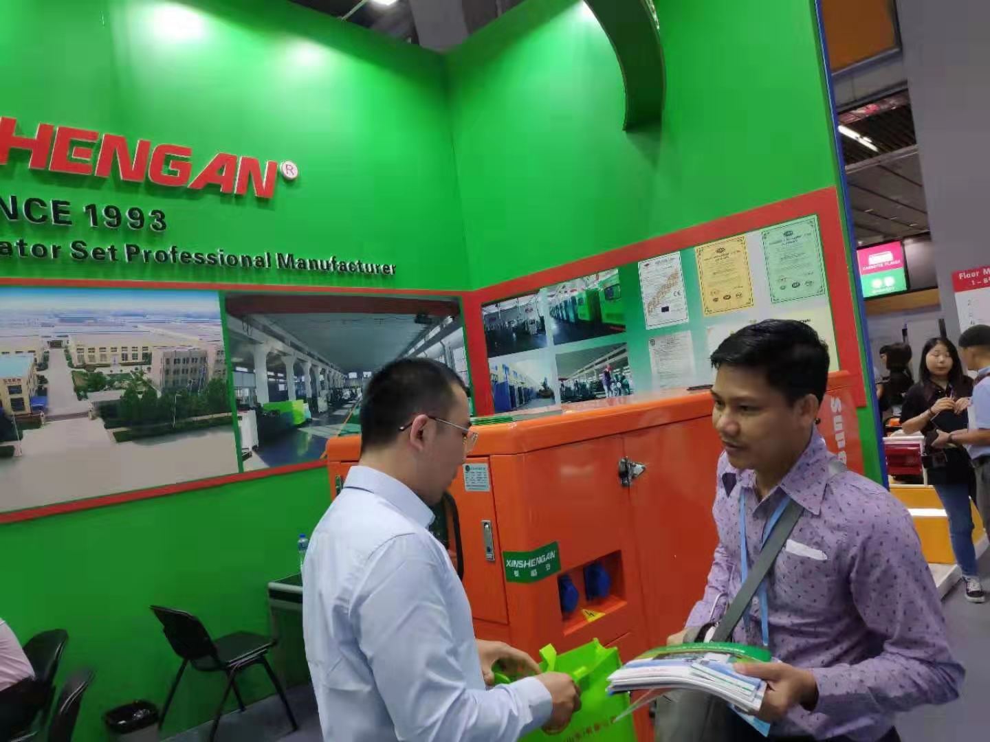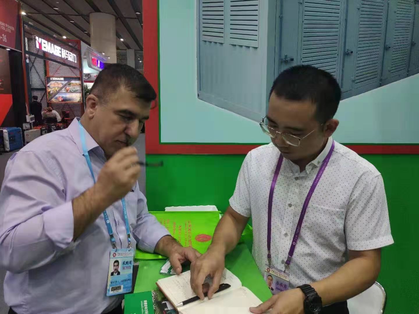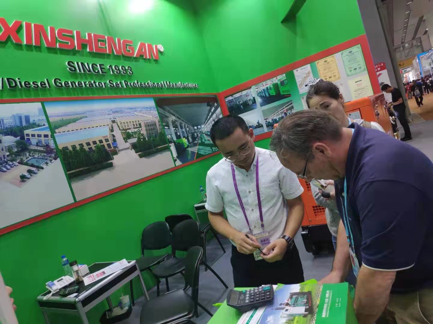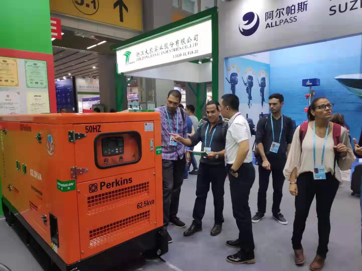 10月17日,广交会第3天,新盛安动力科技(山东)有限公司展出的帕金斯静音发电机组吸引力依旧强大,来自中东、印度、埃及、欧洲及国内的多家企业和客户,前来参观考察洽谈业务。