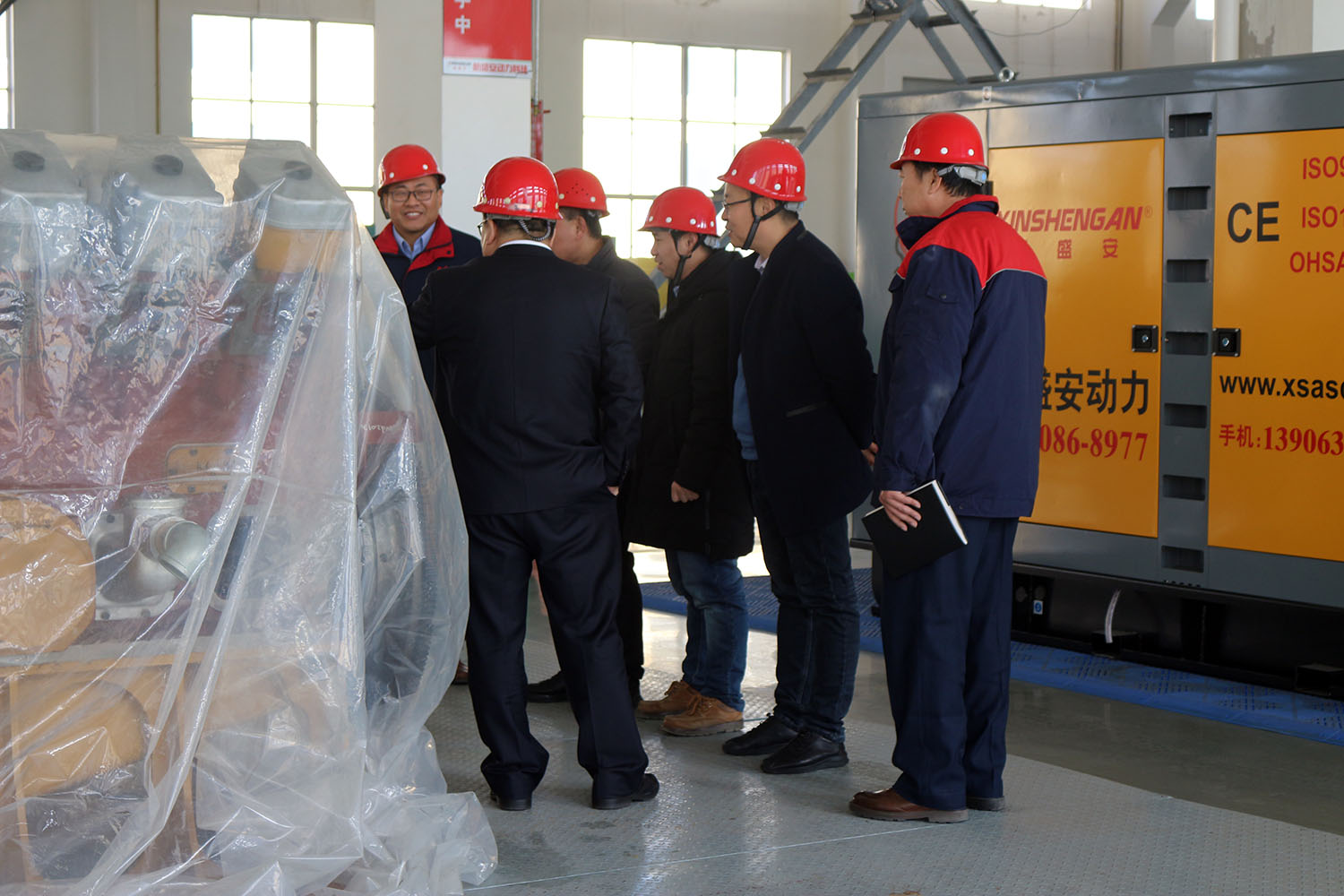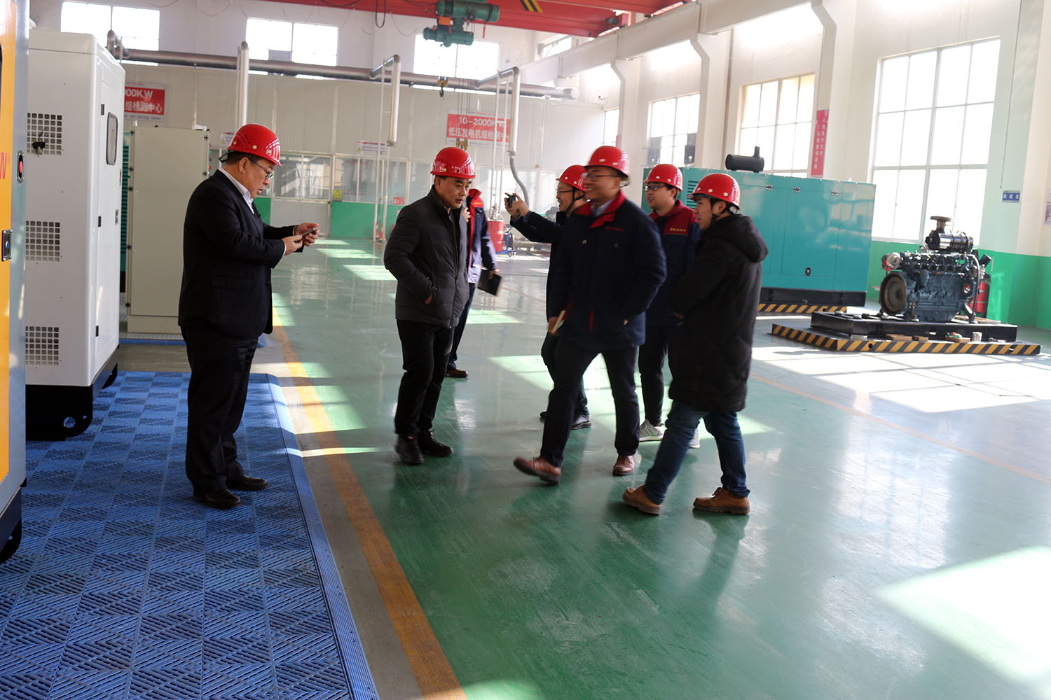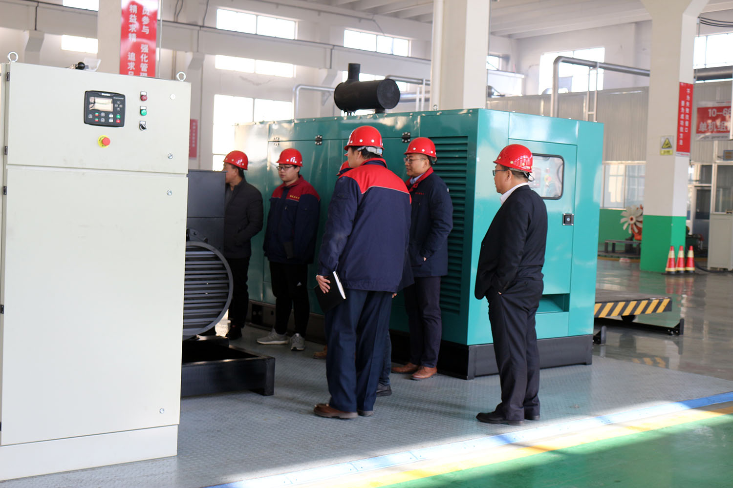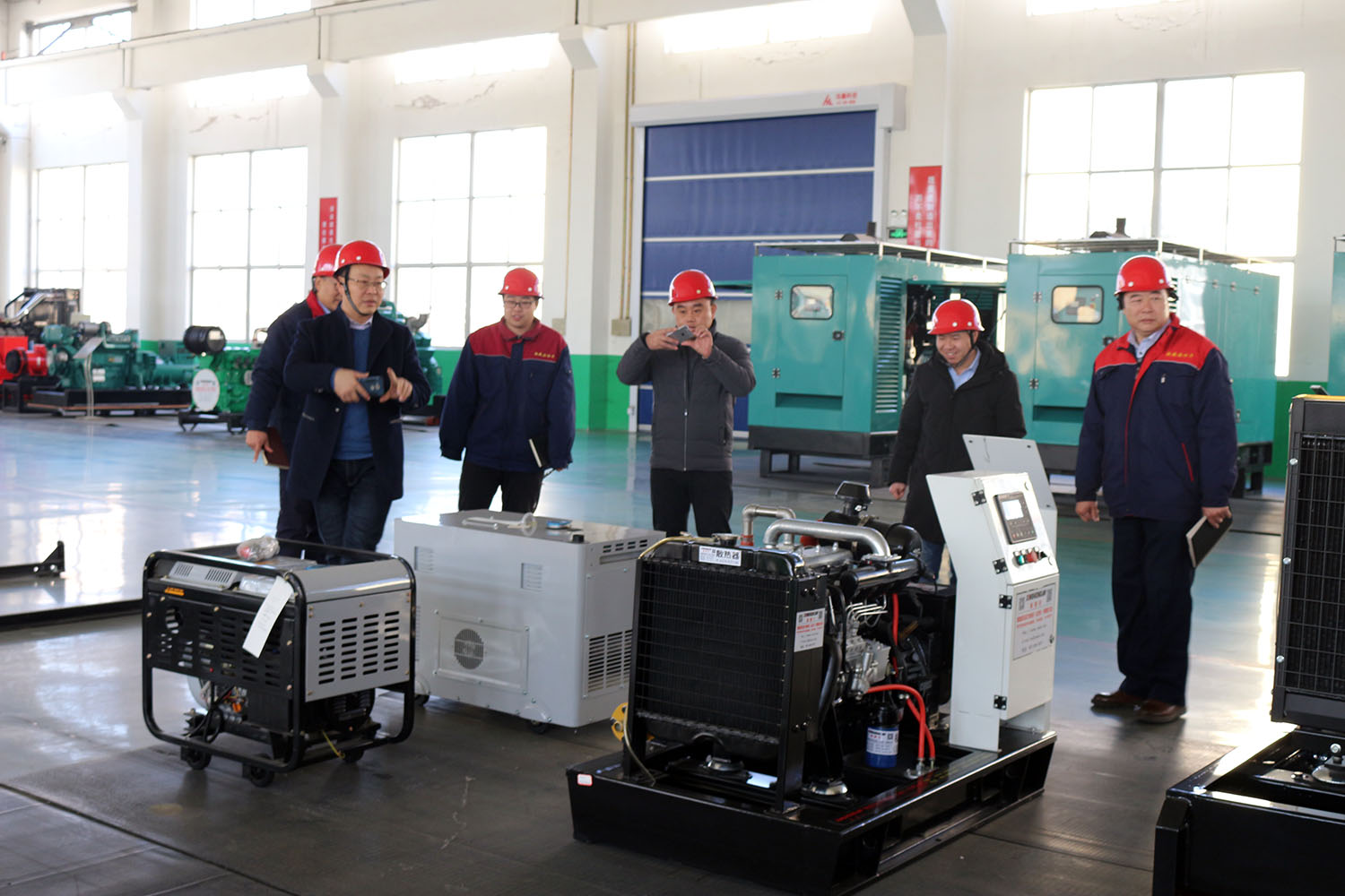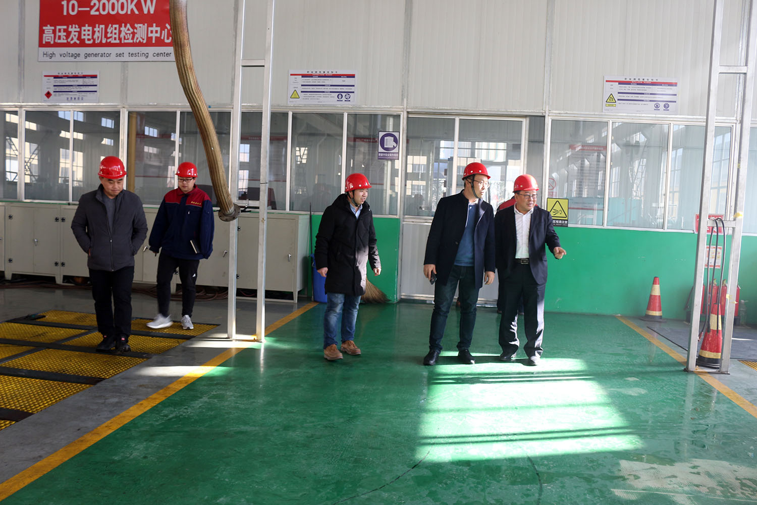 外贸部、内贸部同事及技术总工,陪同客户参观了生产车间及发电机组试验台,经过对客户的相关讲解及下午对厂房的实地考察,客户对我司规模有了初步的了解,客户表示非常满意。