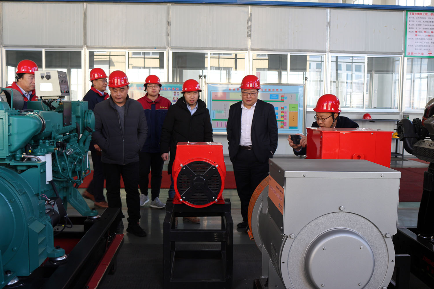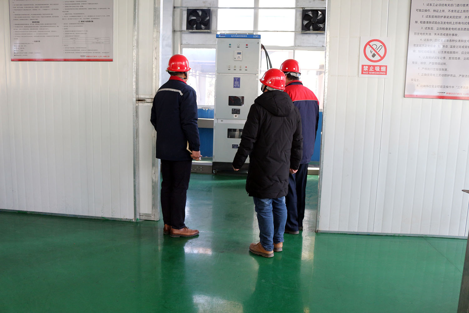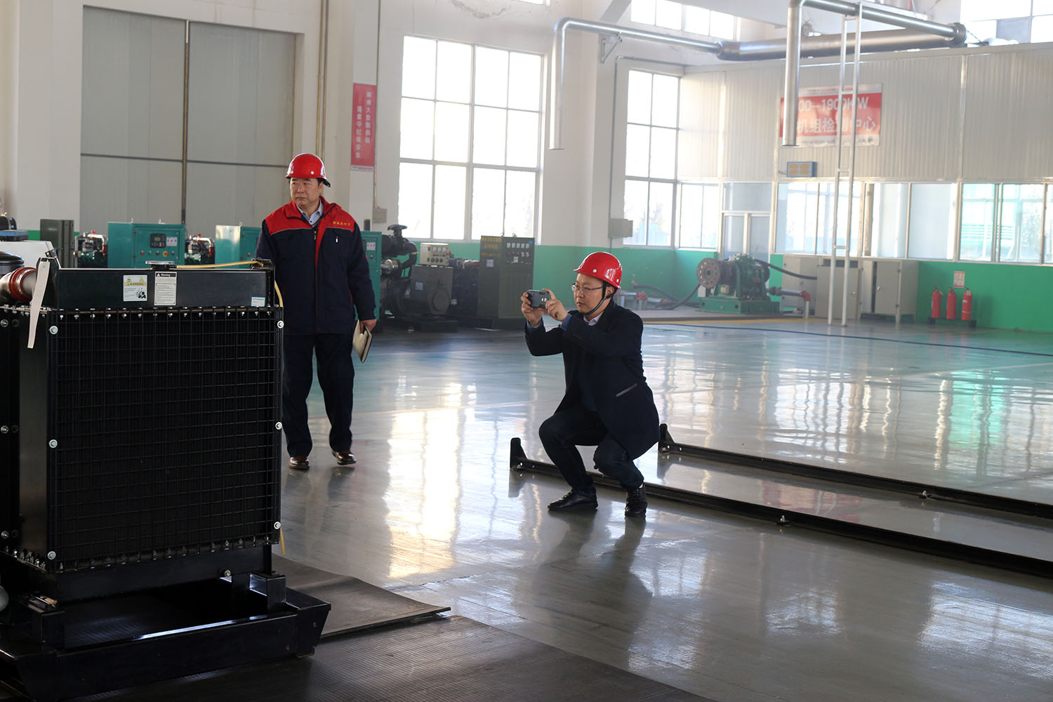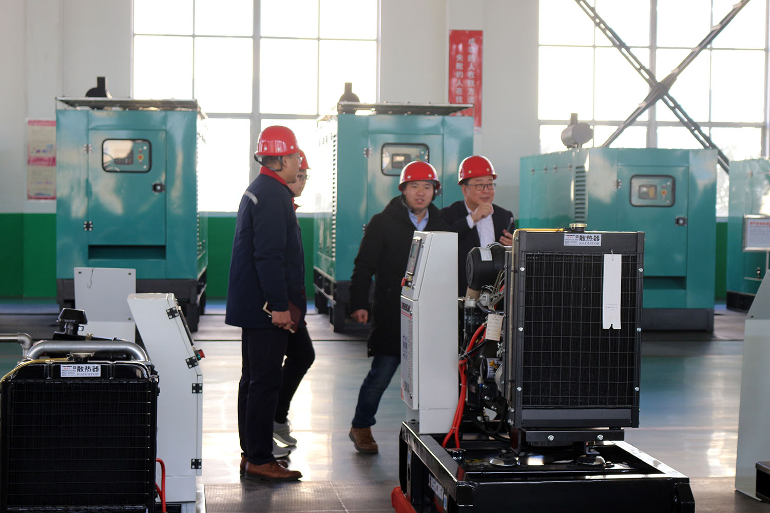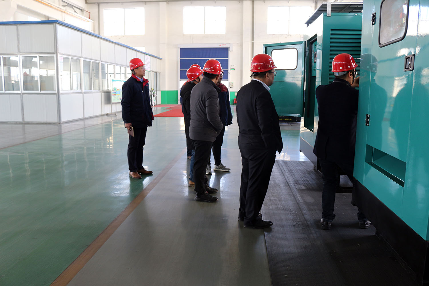外贸部、内贸部同事及技术总工,陪同客户参观了生产车间及发电机组试验台,经过对客户的相关讲解及下午对厂房的实地考察,客户对我司规模有了初步的了解,客户表示非常满意。
