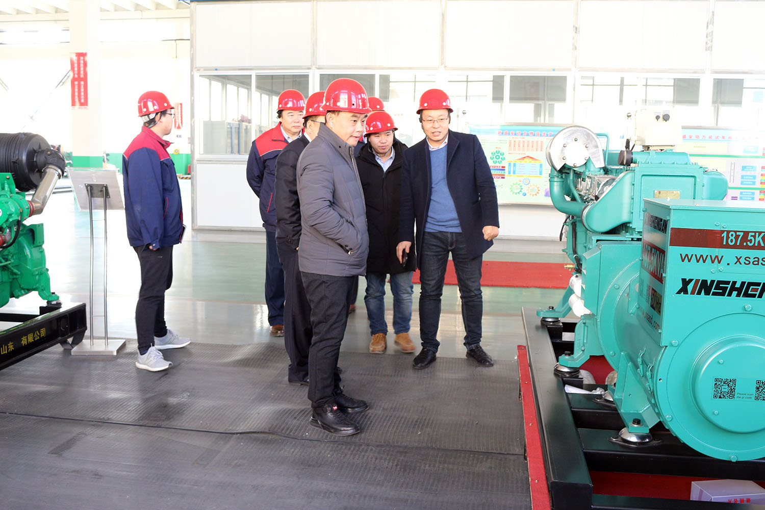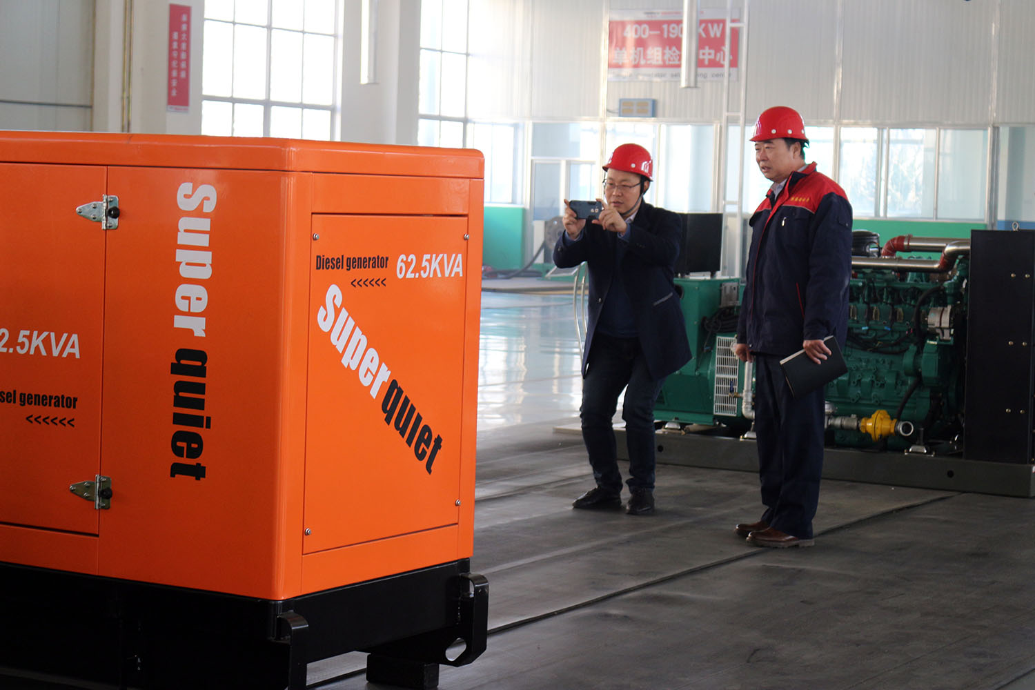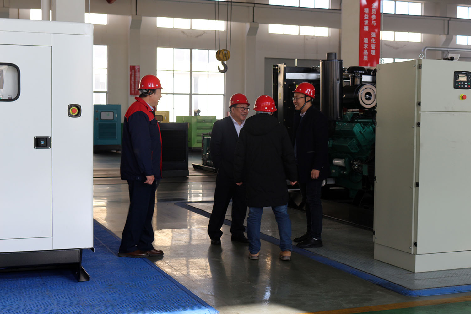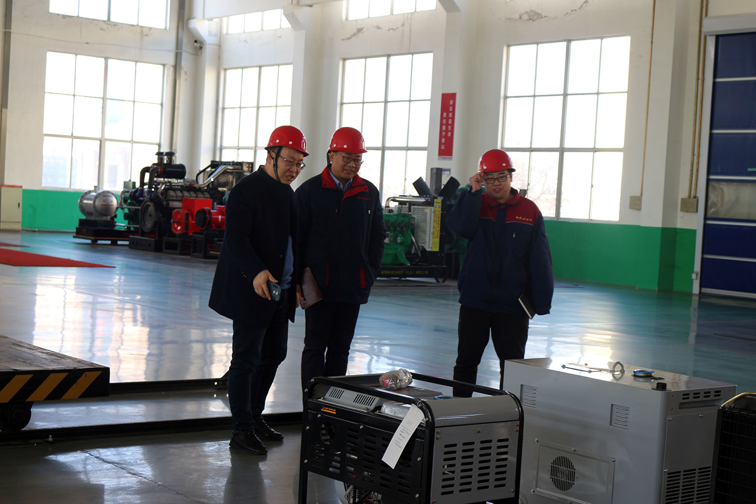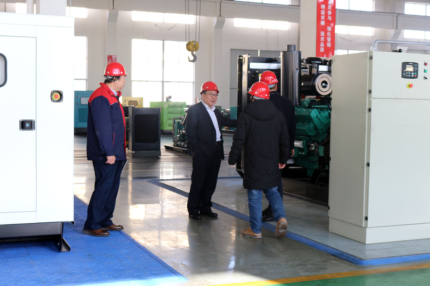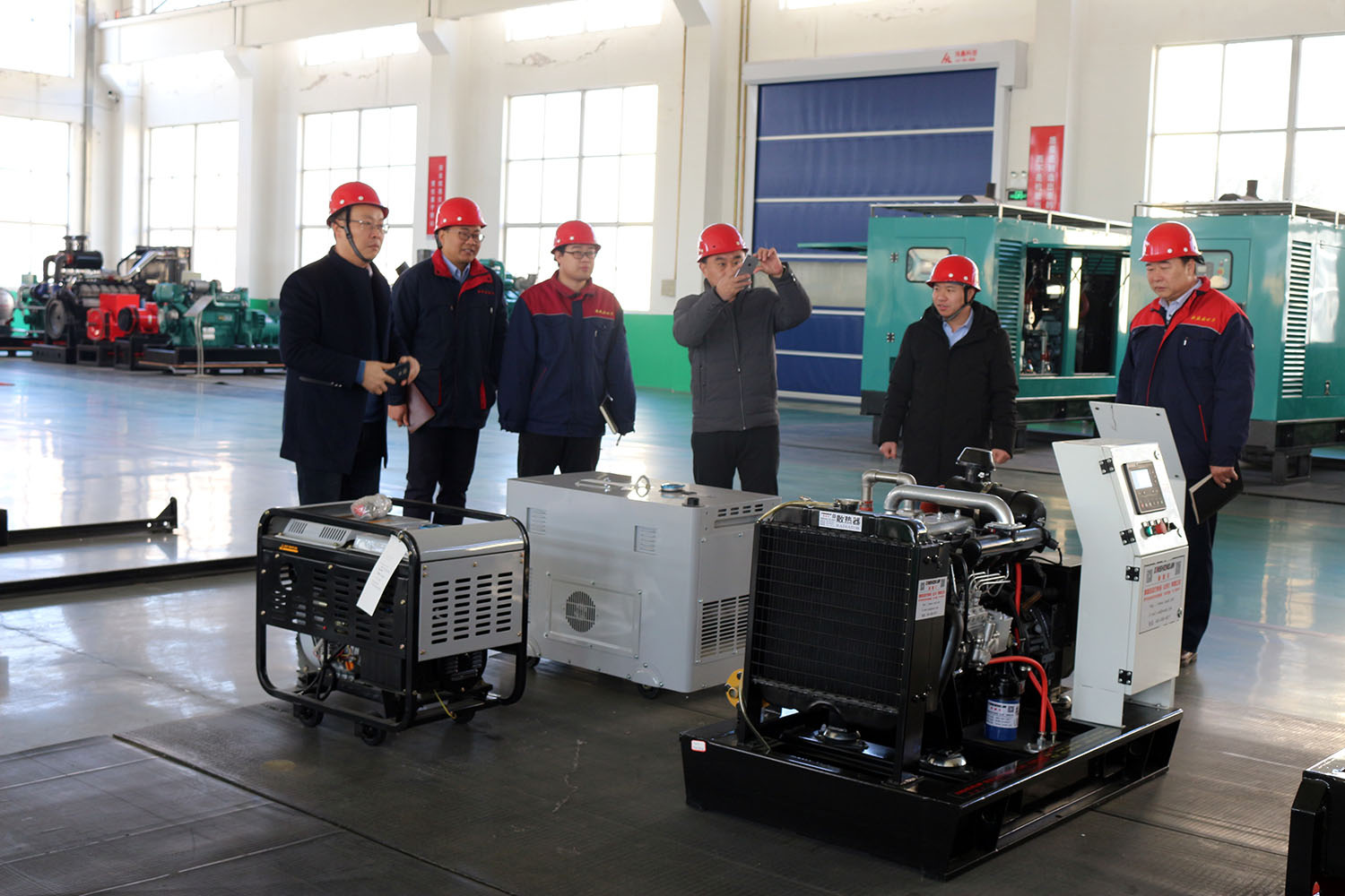外贸部、内贸部同事及技术总工,陪同客户参观了生产车间及发电机组试验台,经过对客户的相关讲解及下午对厂房的实地考察,客户对我司规模有了初步的了解,客户表示非常满意。