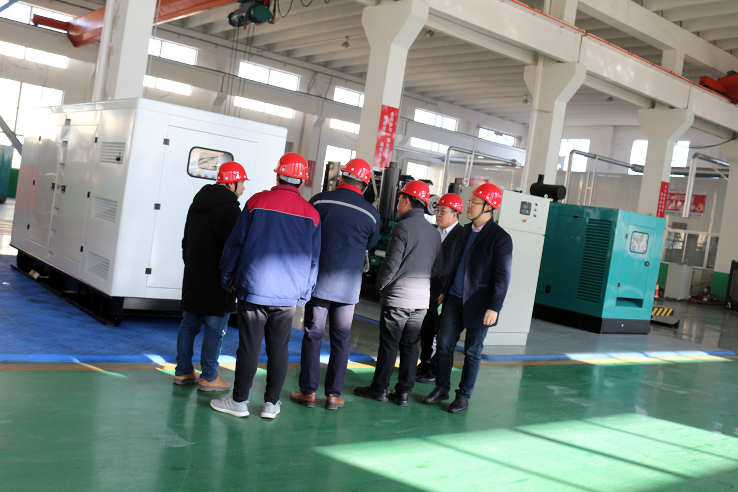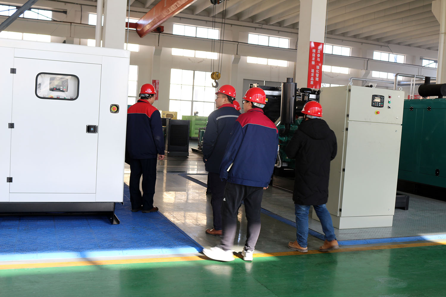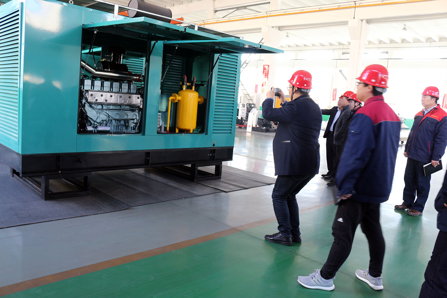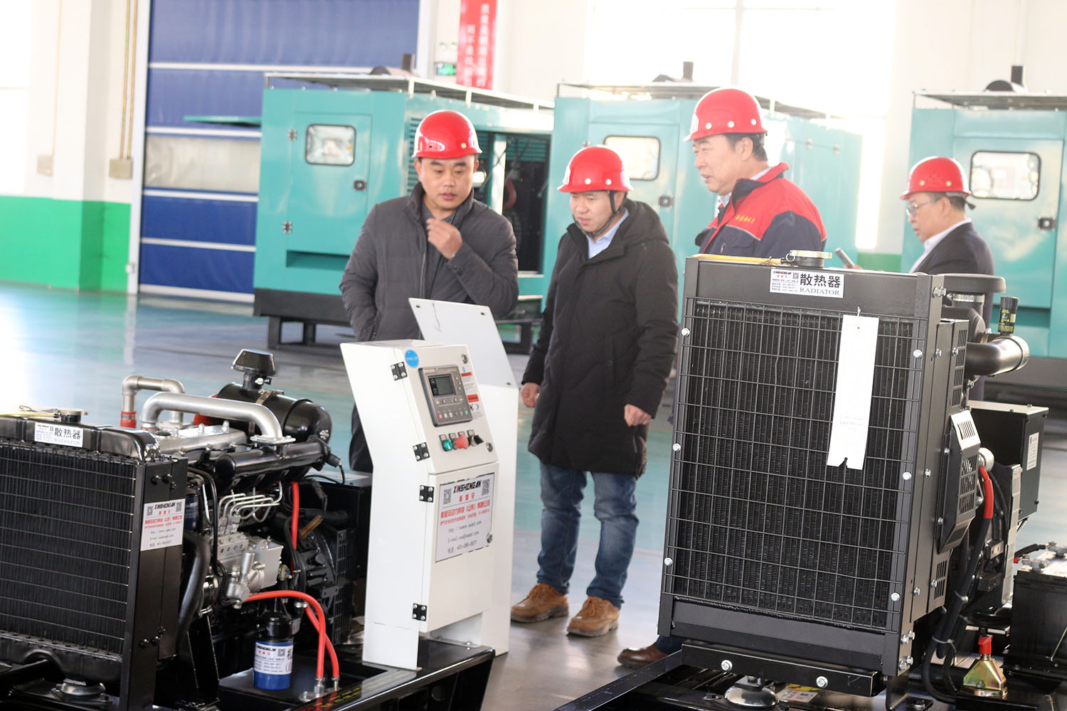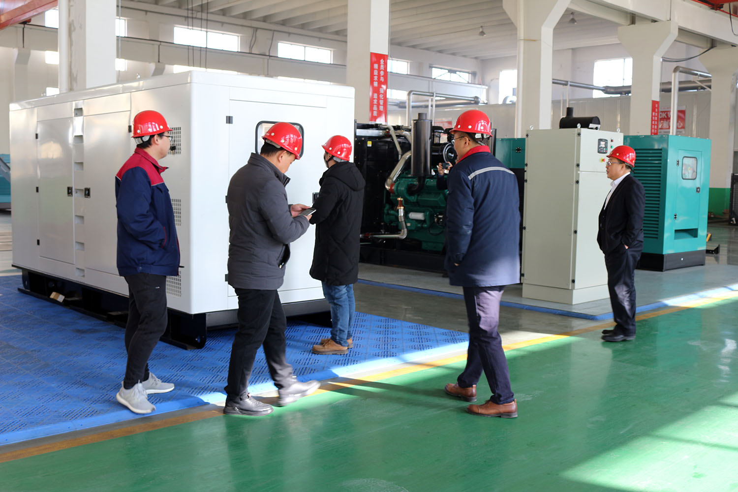 外贸部、内贸部同事及技术总工,陪同客户参观了生产车间及发电机组试验台,经过对客户的相关讲解及下午对厂房的实地考察,客户对我司规模有了初步的了解,客户表示非常满意。