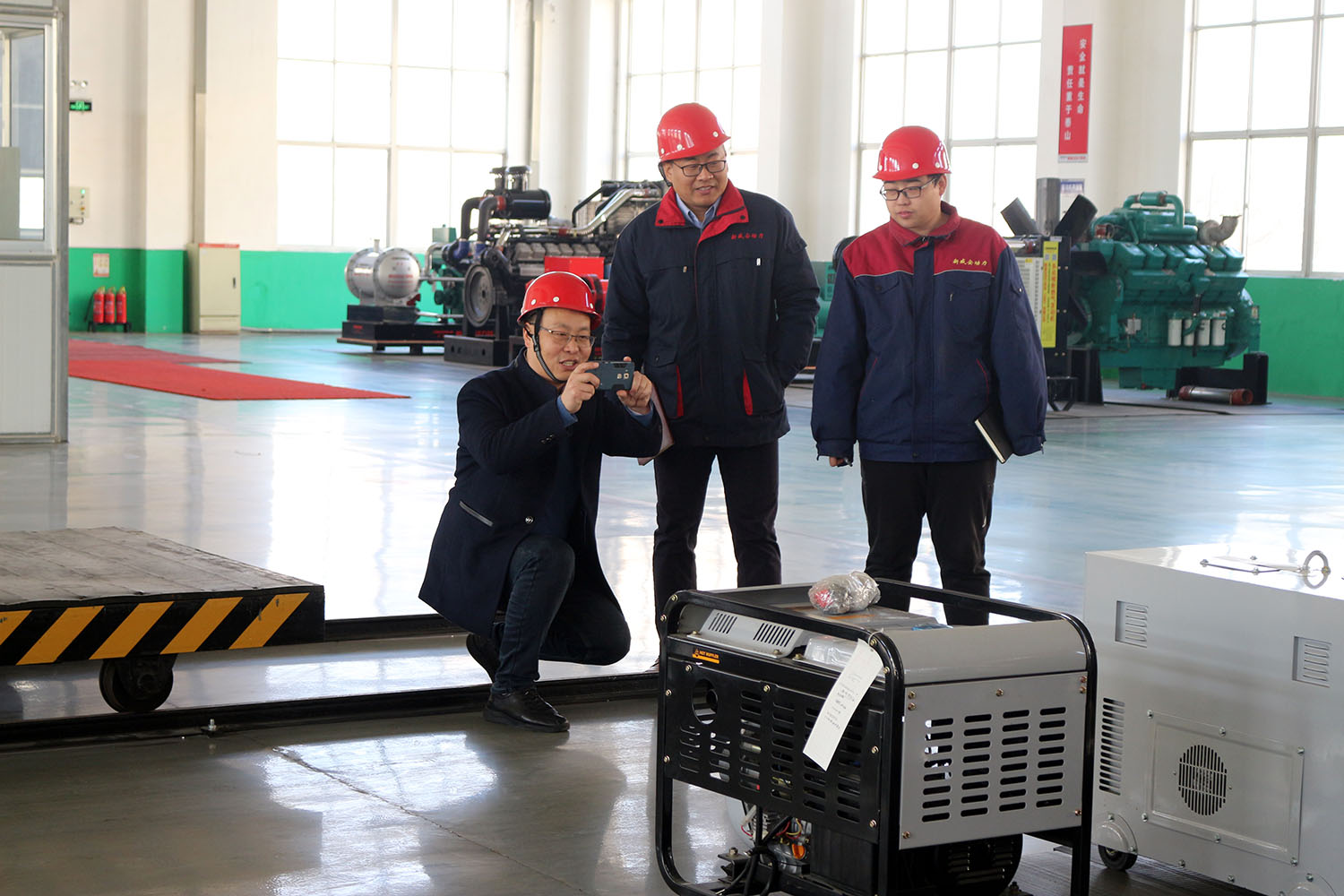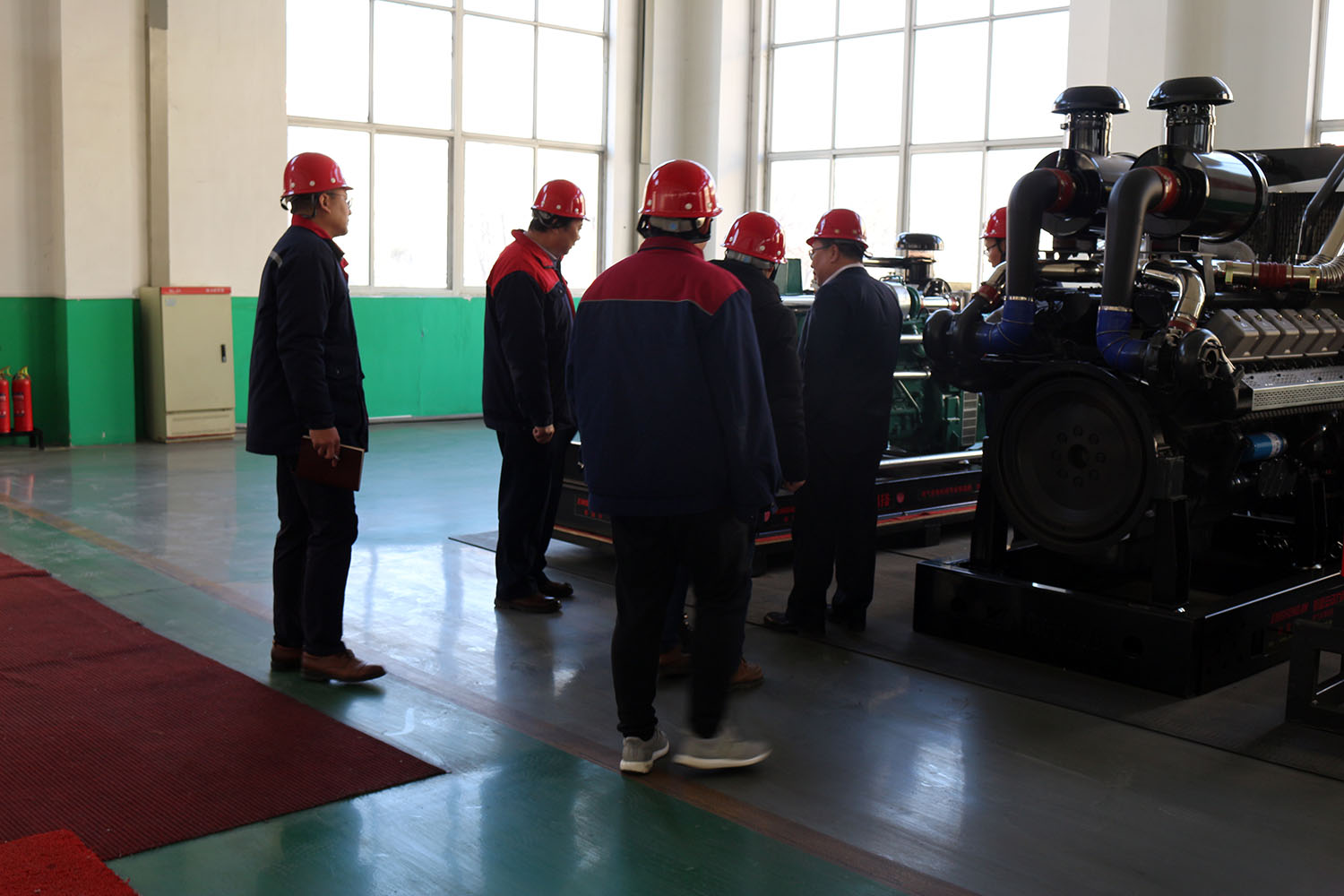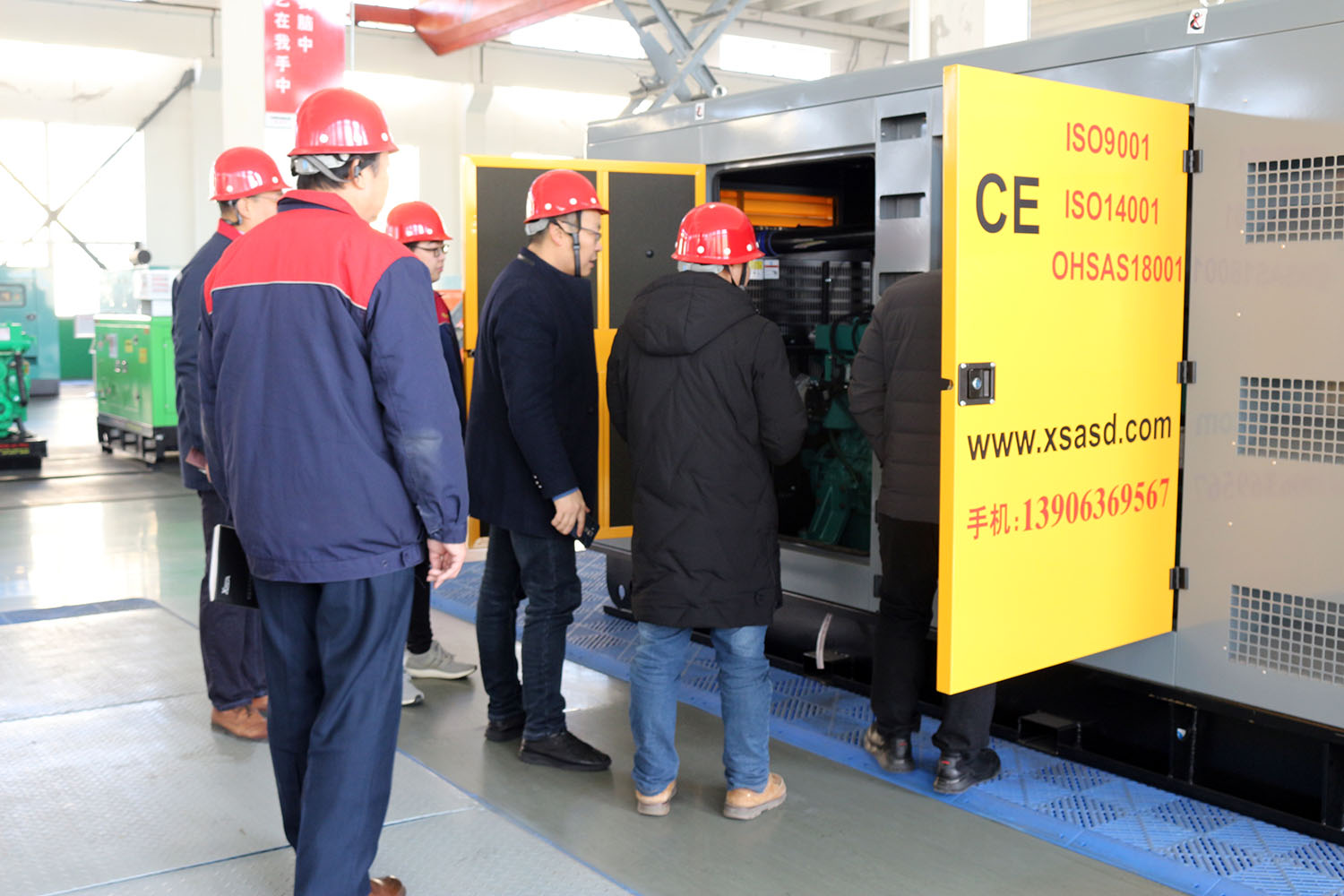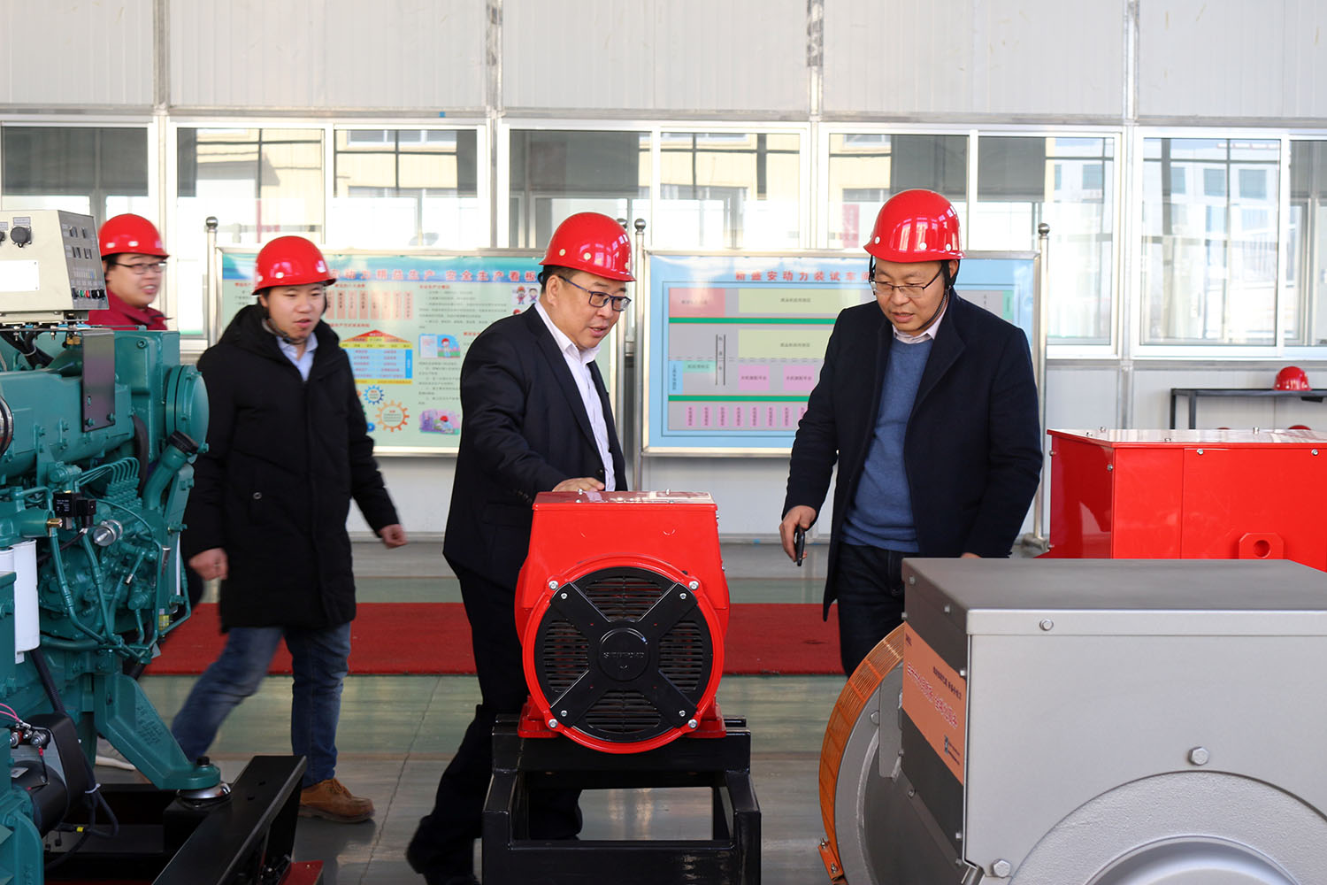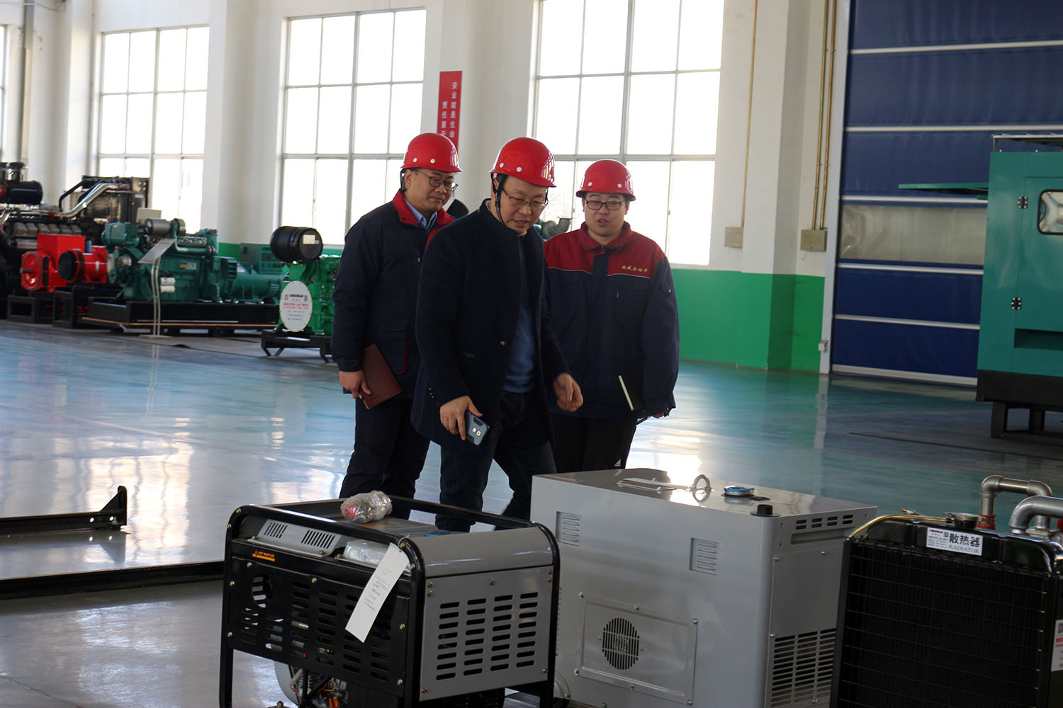 外贸部、内贸部同事及技术总工,陪同客户参观了生产车间及发电机组试验台,经过对客户的相关讲解及下午对厂房的实地考察,客户对我司规模有了初步的了解,客户表示非常满意。