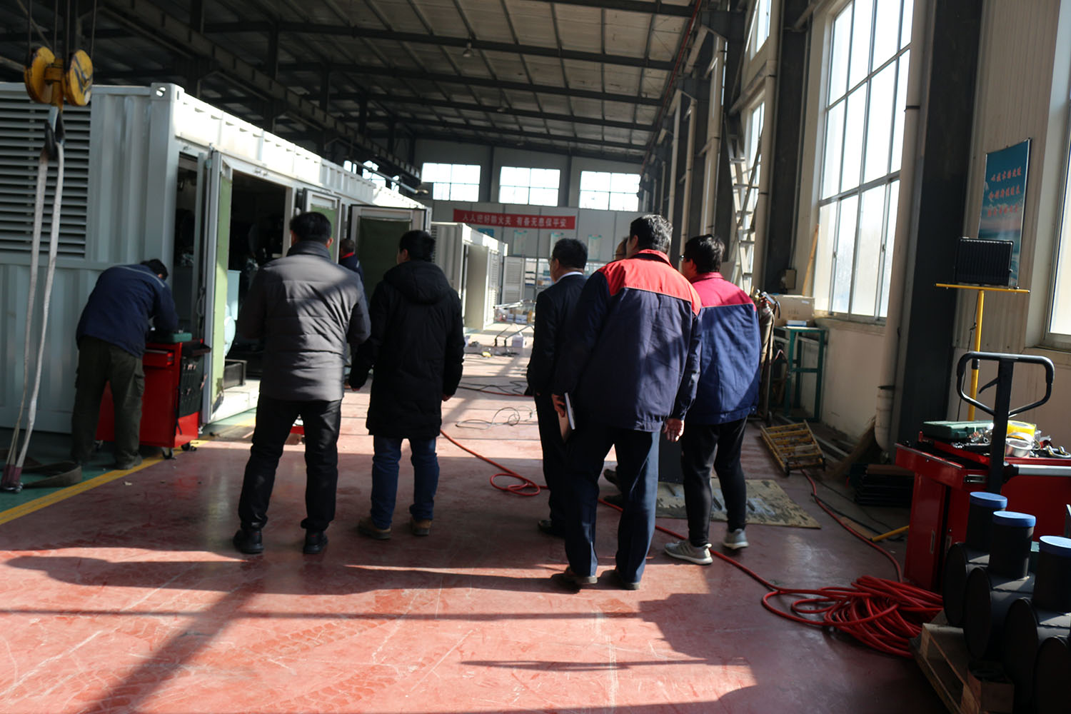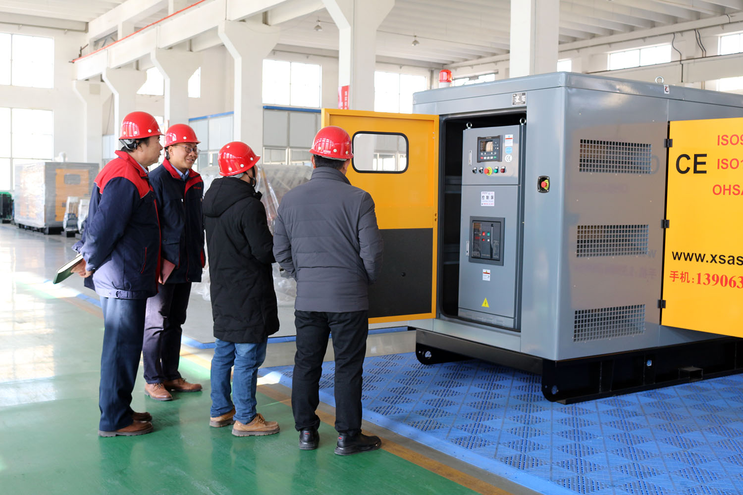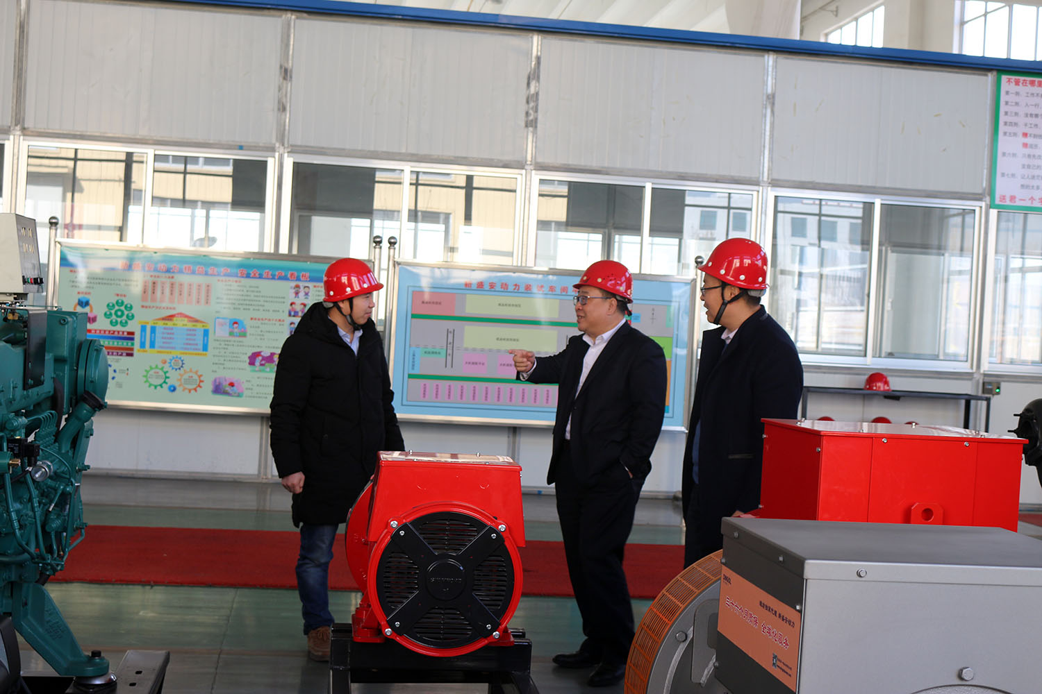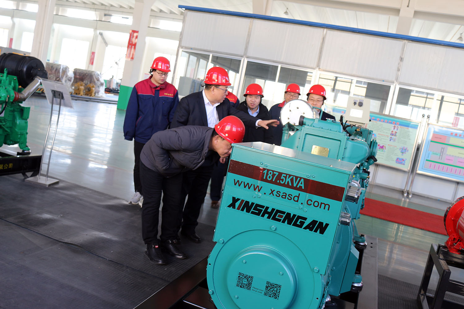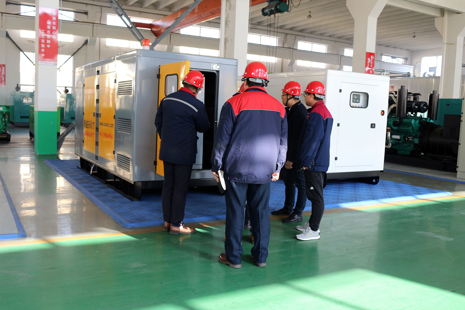 外贸部、内贸部同事及技术总工,陪同客户参观了生产车间及发电机组试验台,经过对客户的相关讲解及下午对厂房的实地考察,客户对我司规模有了初步的了解,客户表示非常满意。