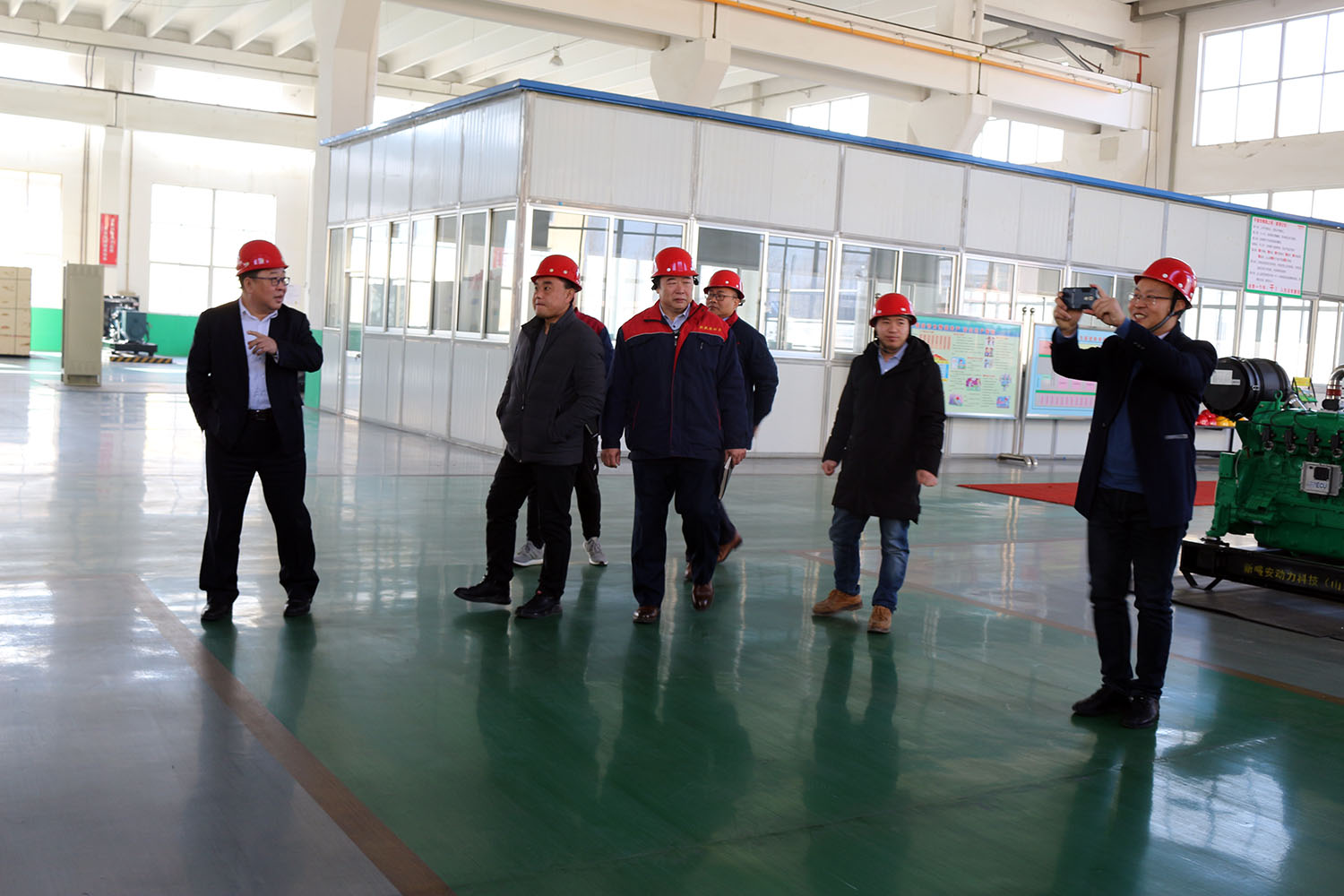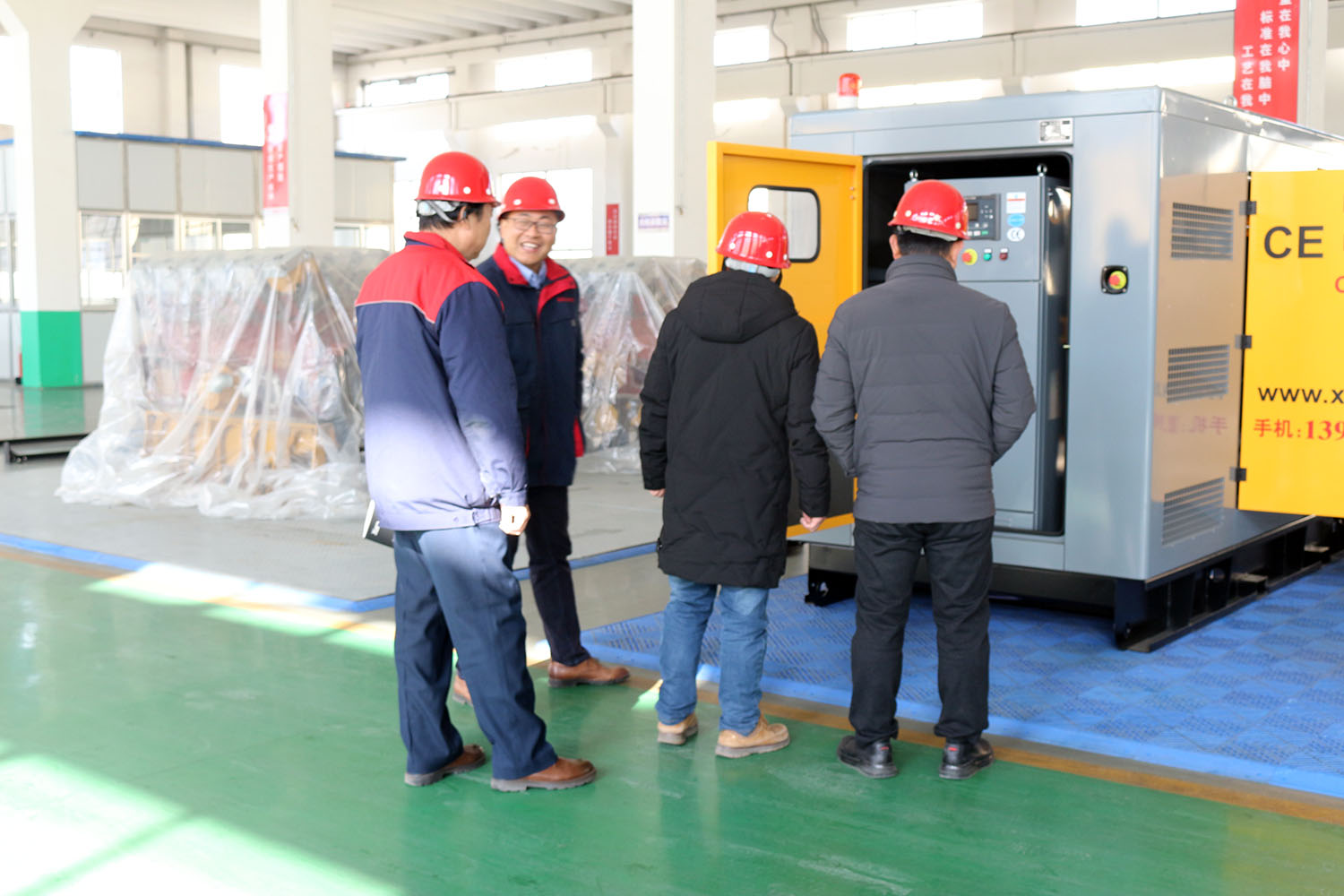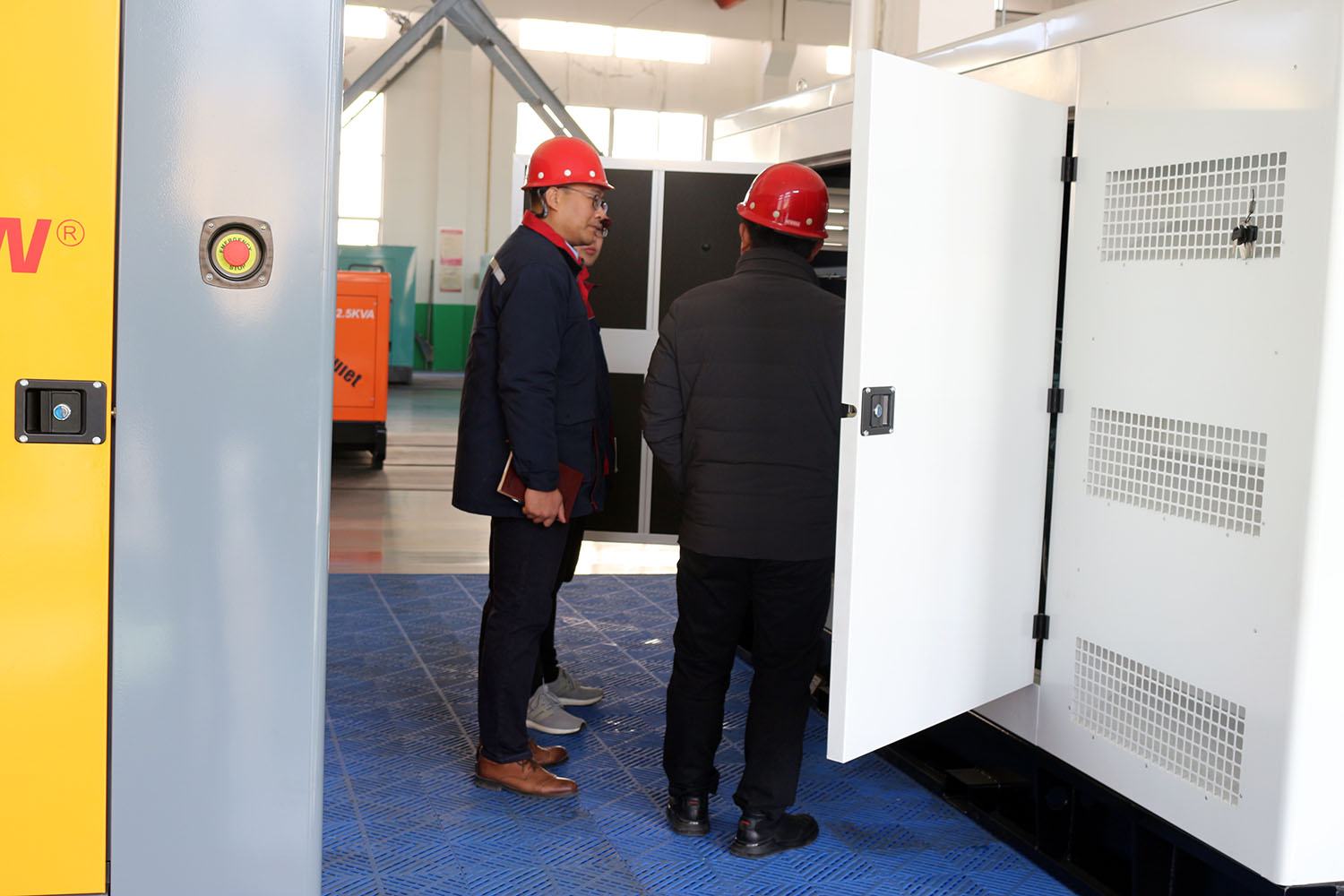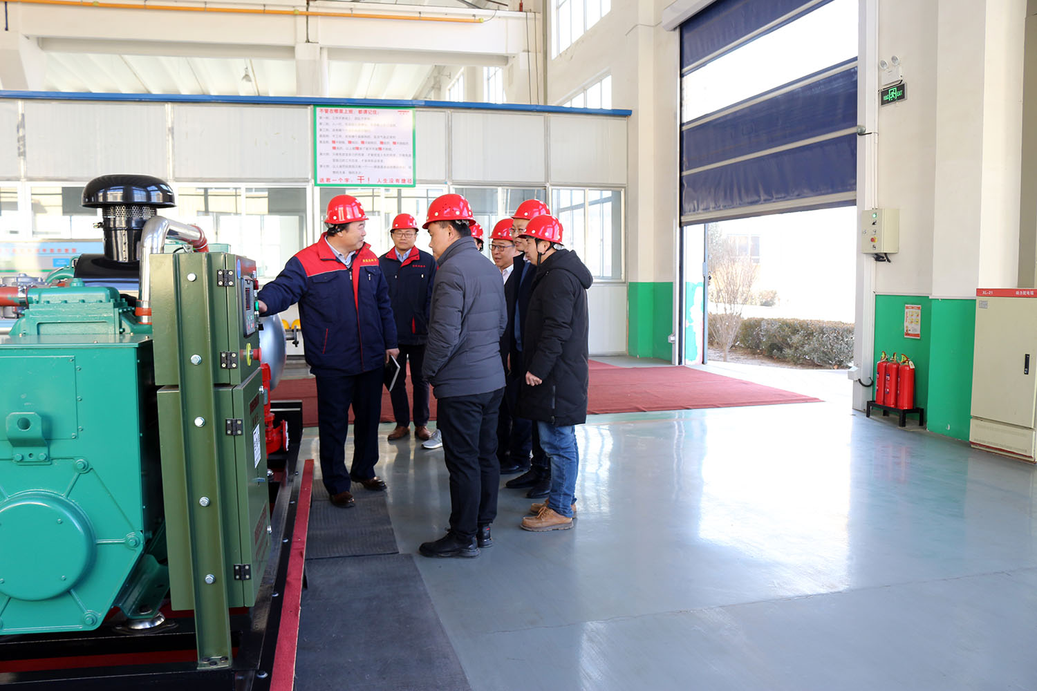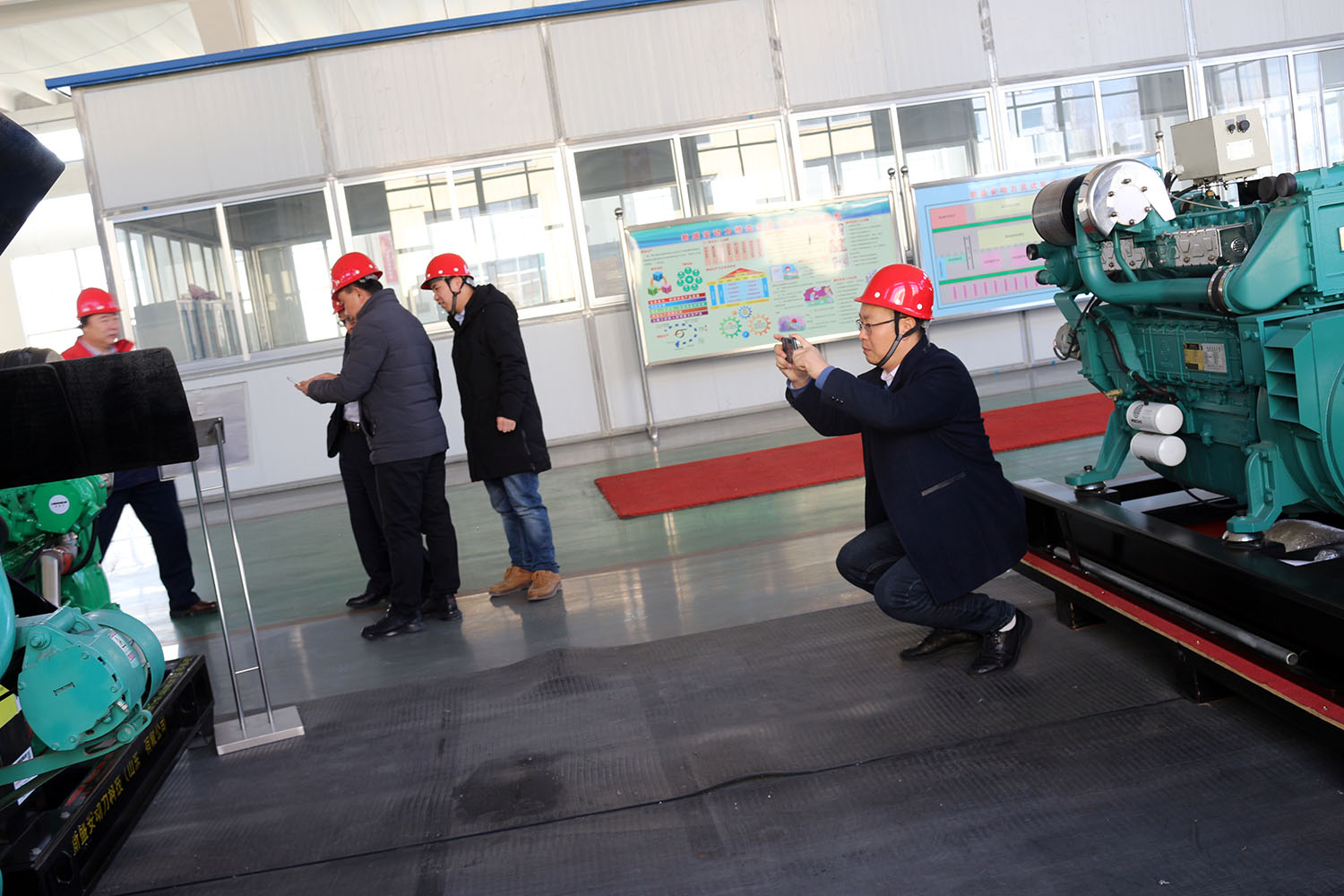 外贸部、内贸部同事及技术总工,陪同客户参观了生产车间及发电机组试验台,经过对客户的相关讲解及下午对厂房的实地考察,客户对我司规模有了初步的了解,客户表示非常满意。