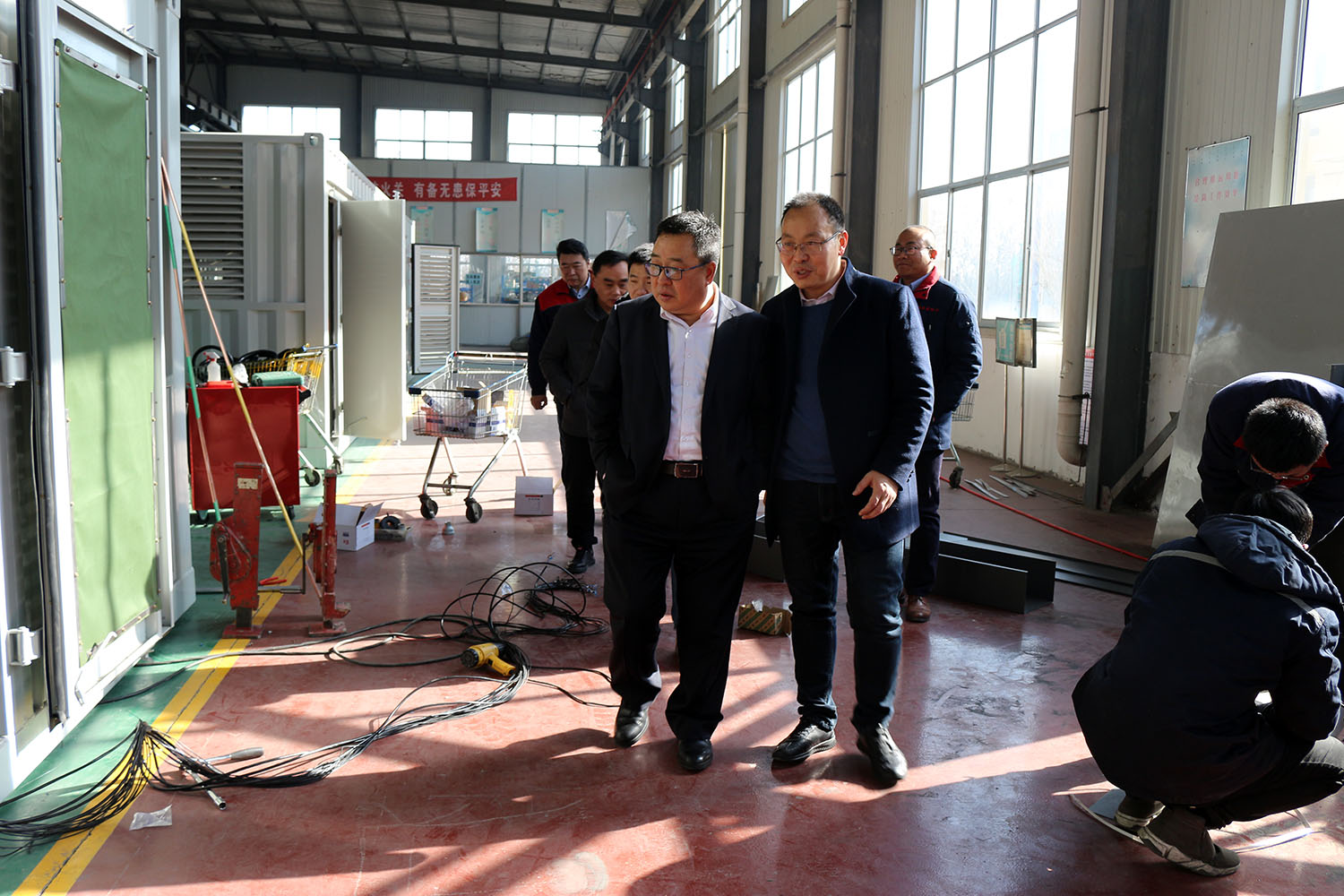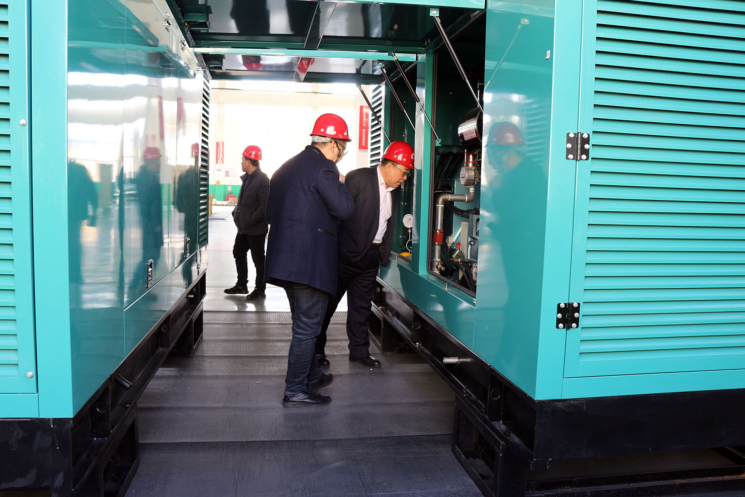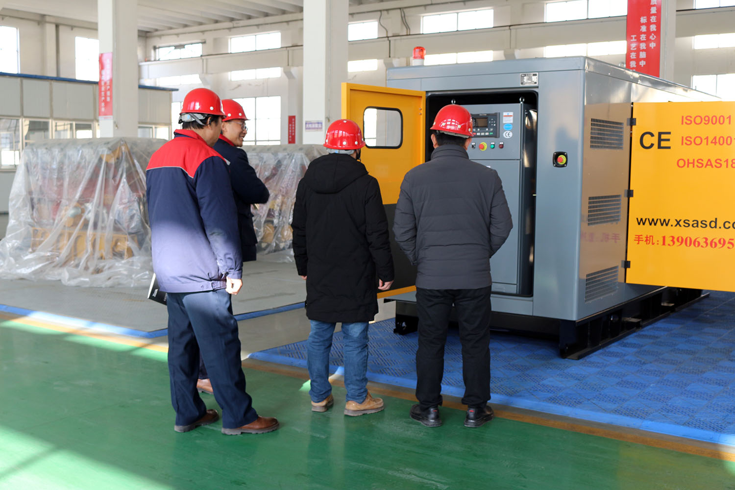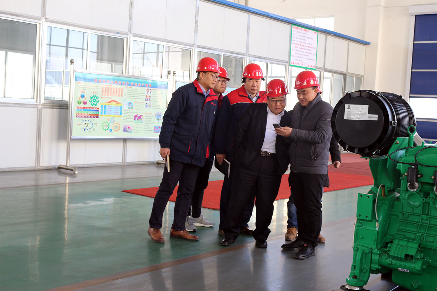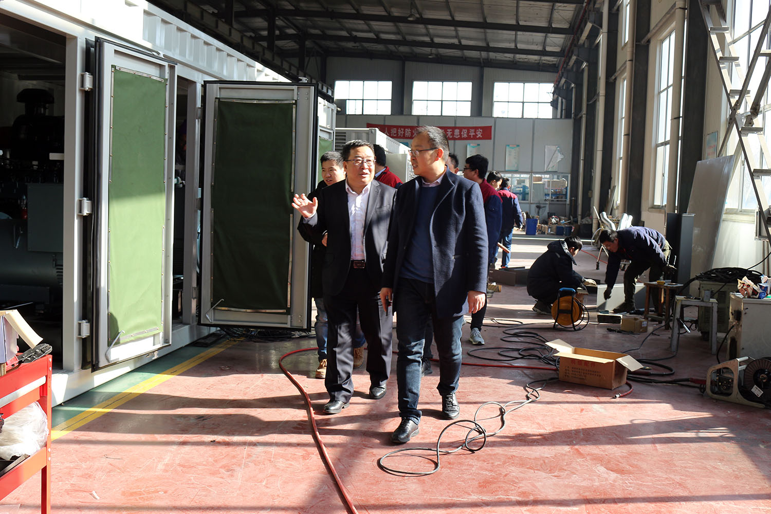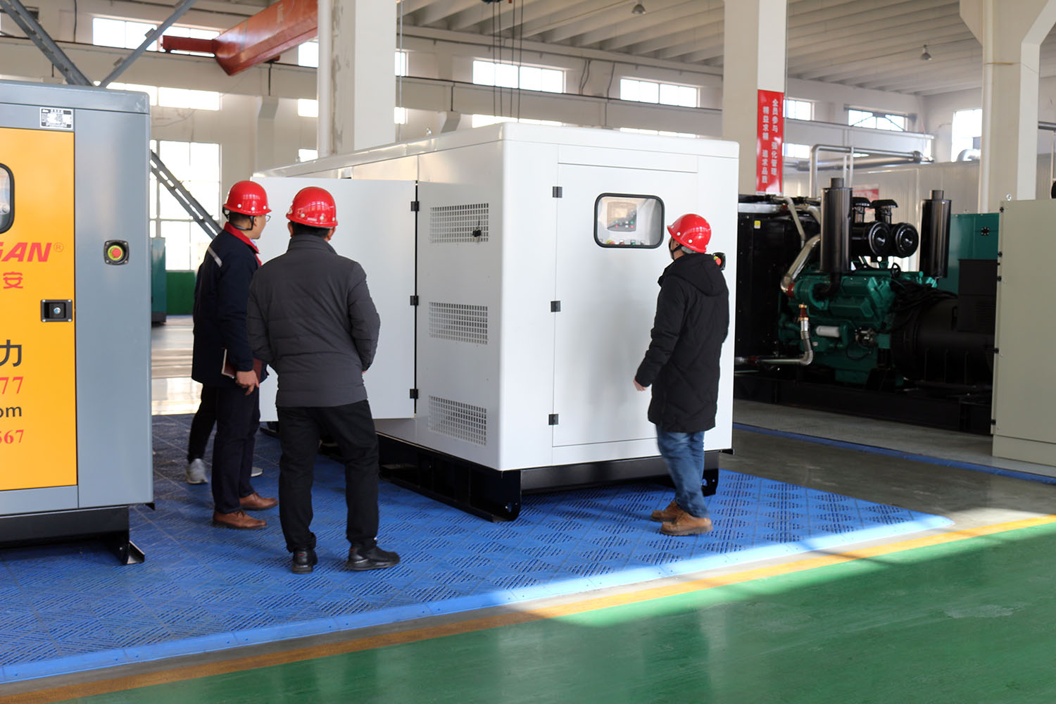 外贸部、内贸部同事及技术总工,陪同客户参观了生产车间及发电机组试验台,经过对客户的相关讲解及下午对厂房的实地考察,客户对我司规模有了初步的了解,客户表示非常满意。