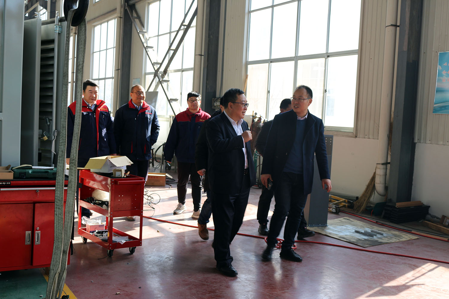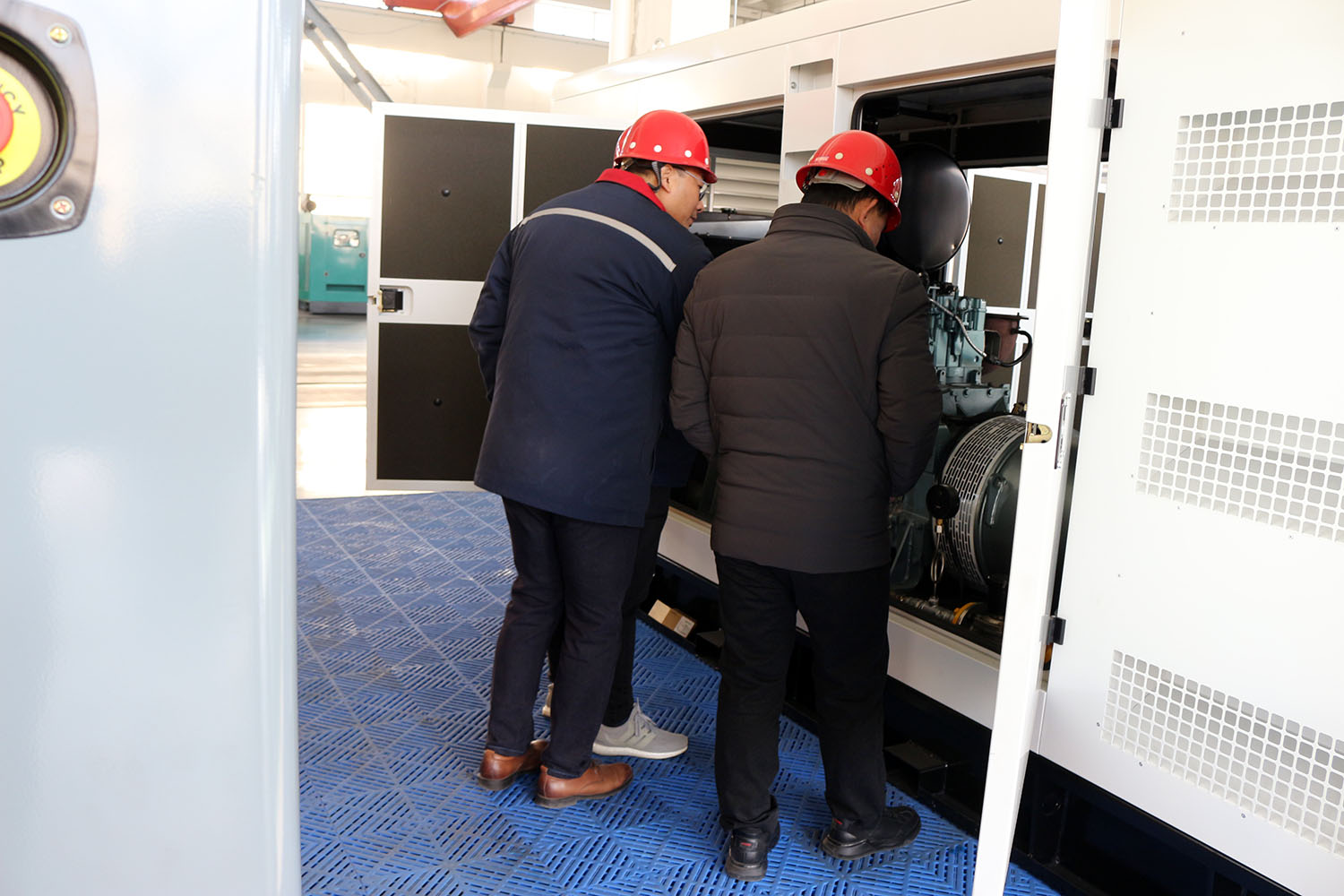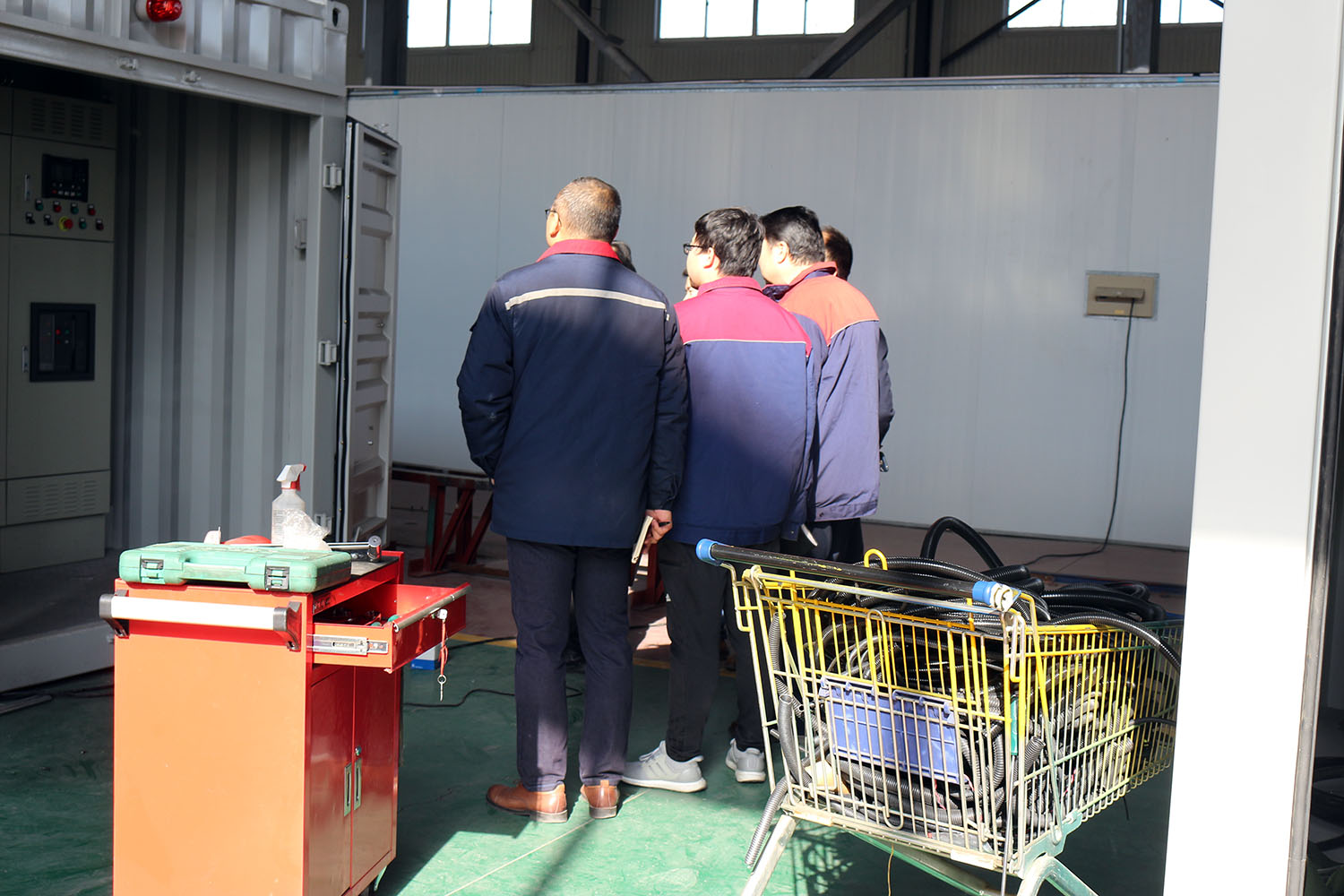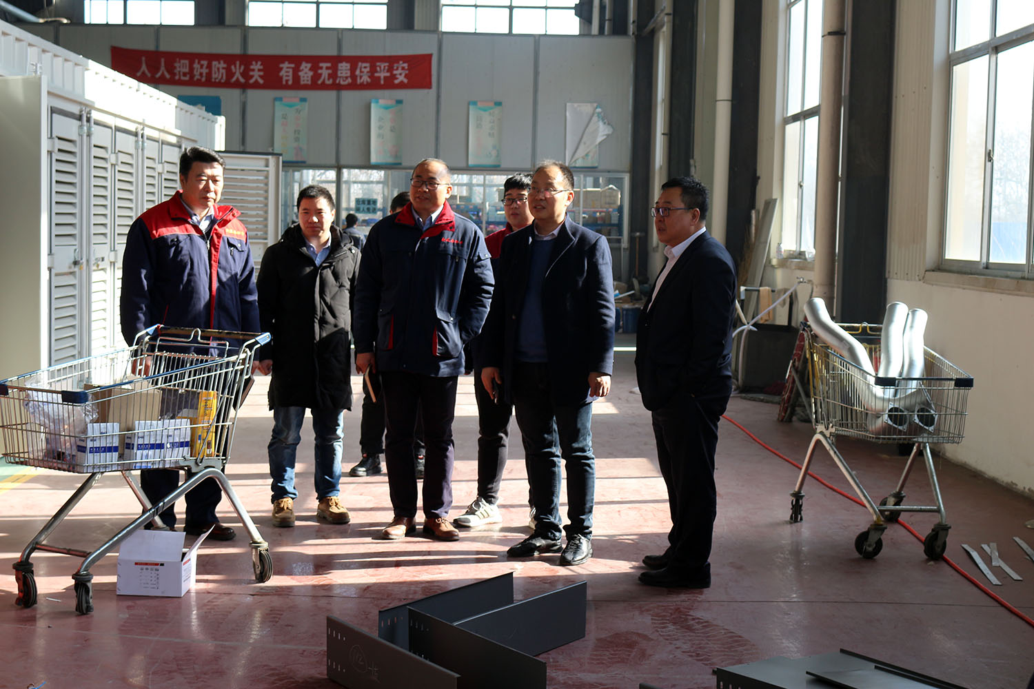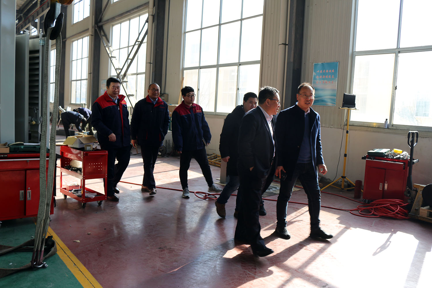 外贸部、内贸部同事及技术总工,陪同客户参观了生产车间及发电机组试验台,经过对客户的相关讲解及下午对厂房的实地考察,客户对我司规模有了初步的了解,客户表示非常满意。