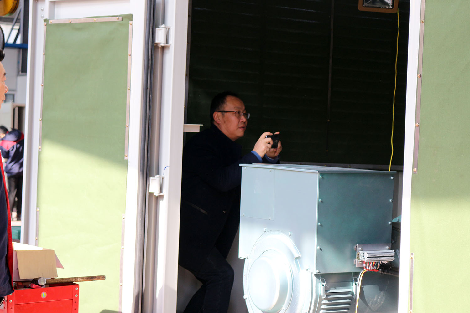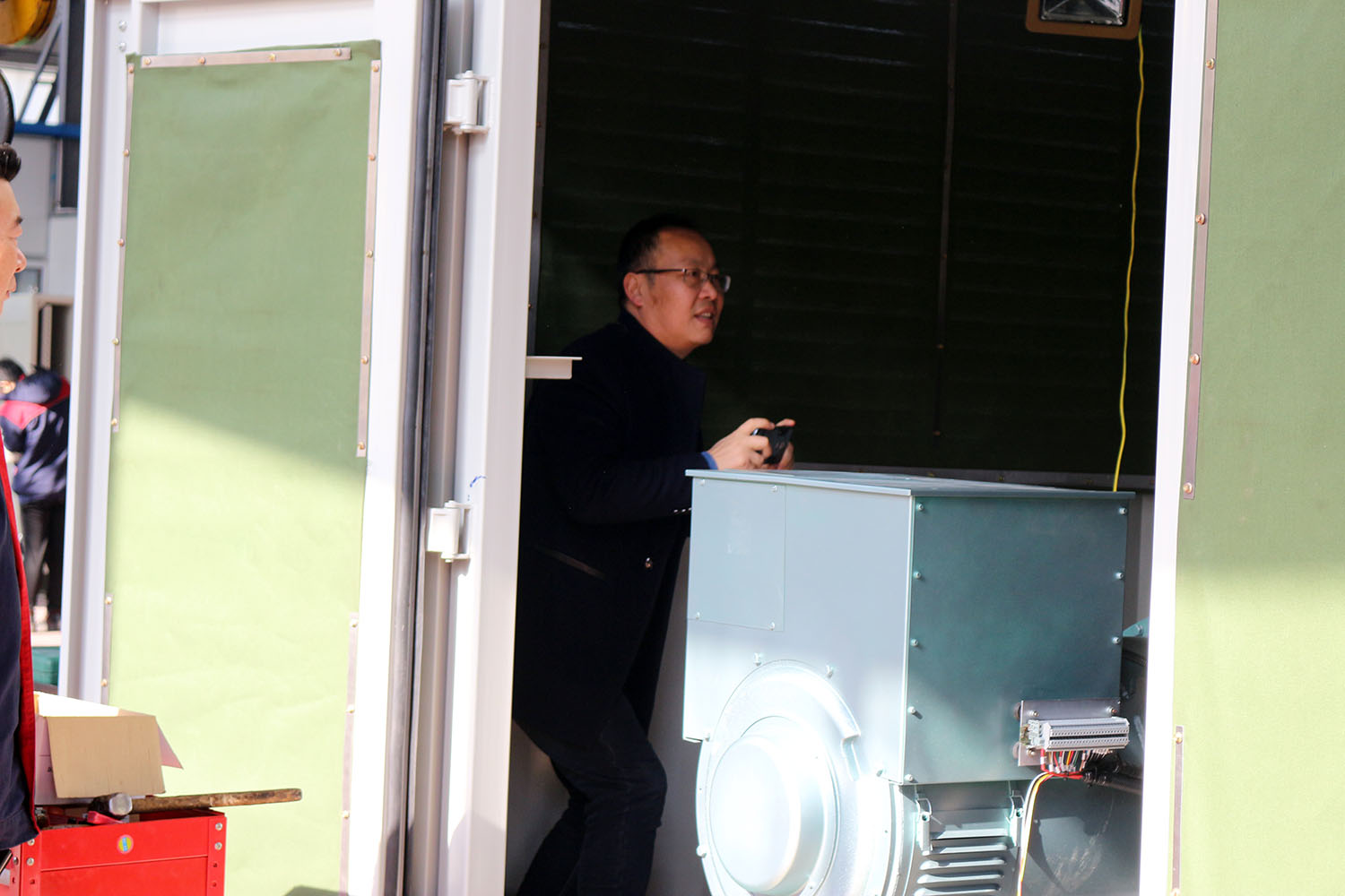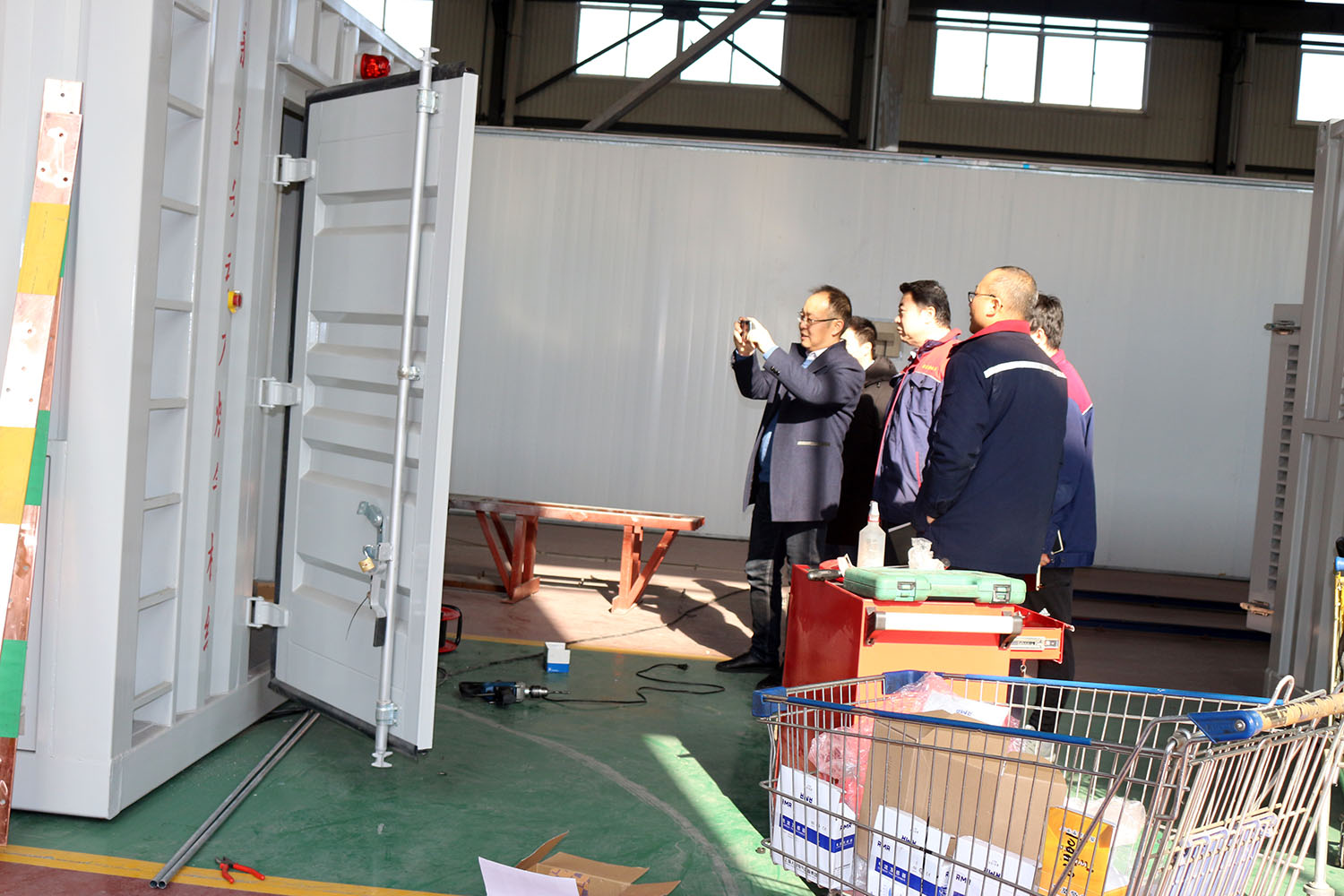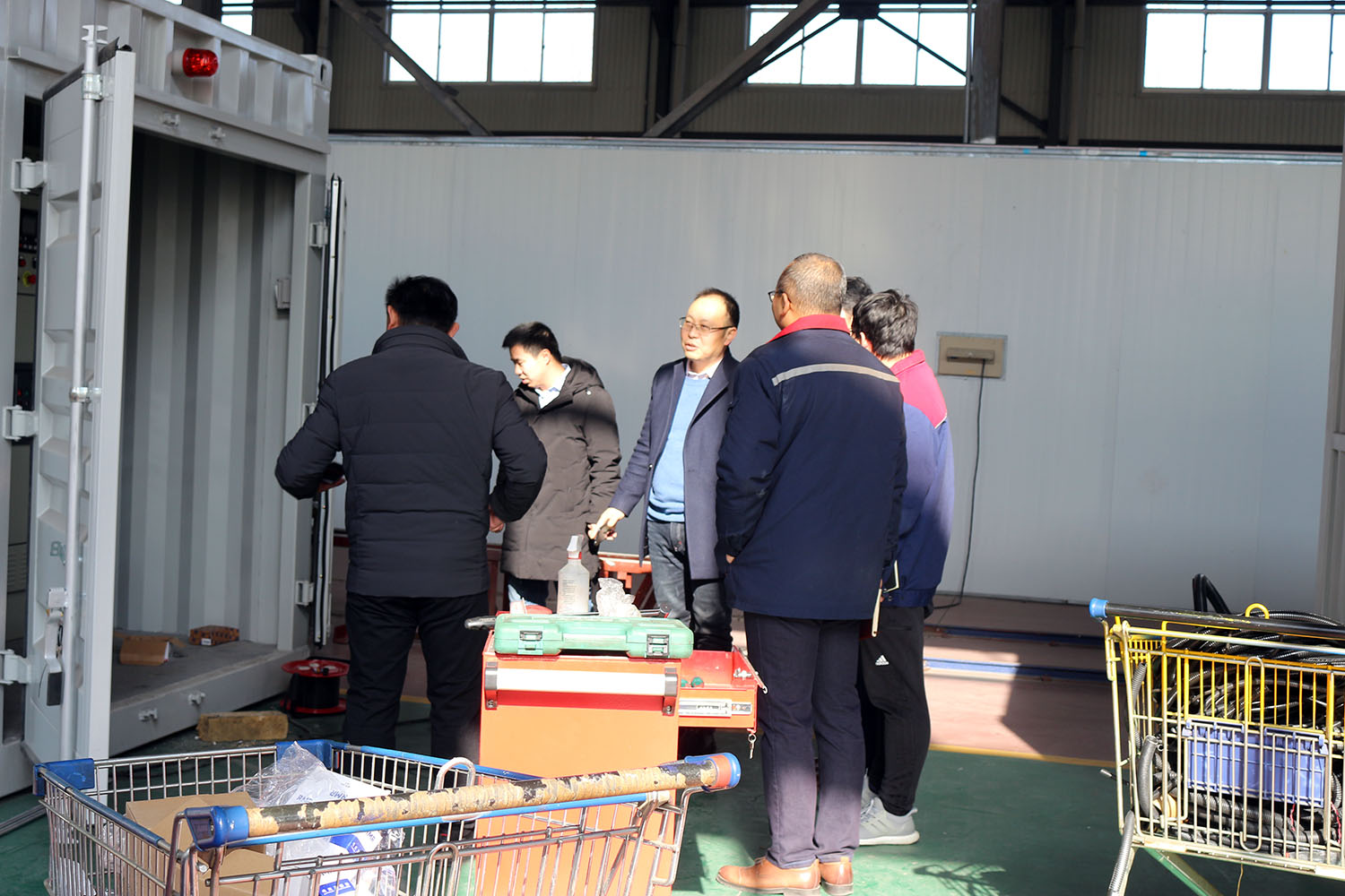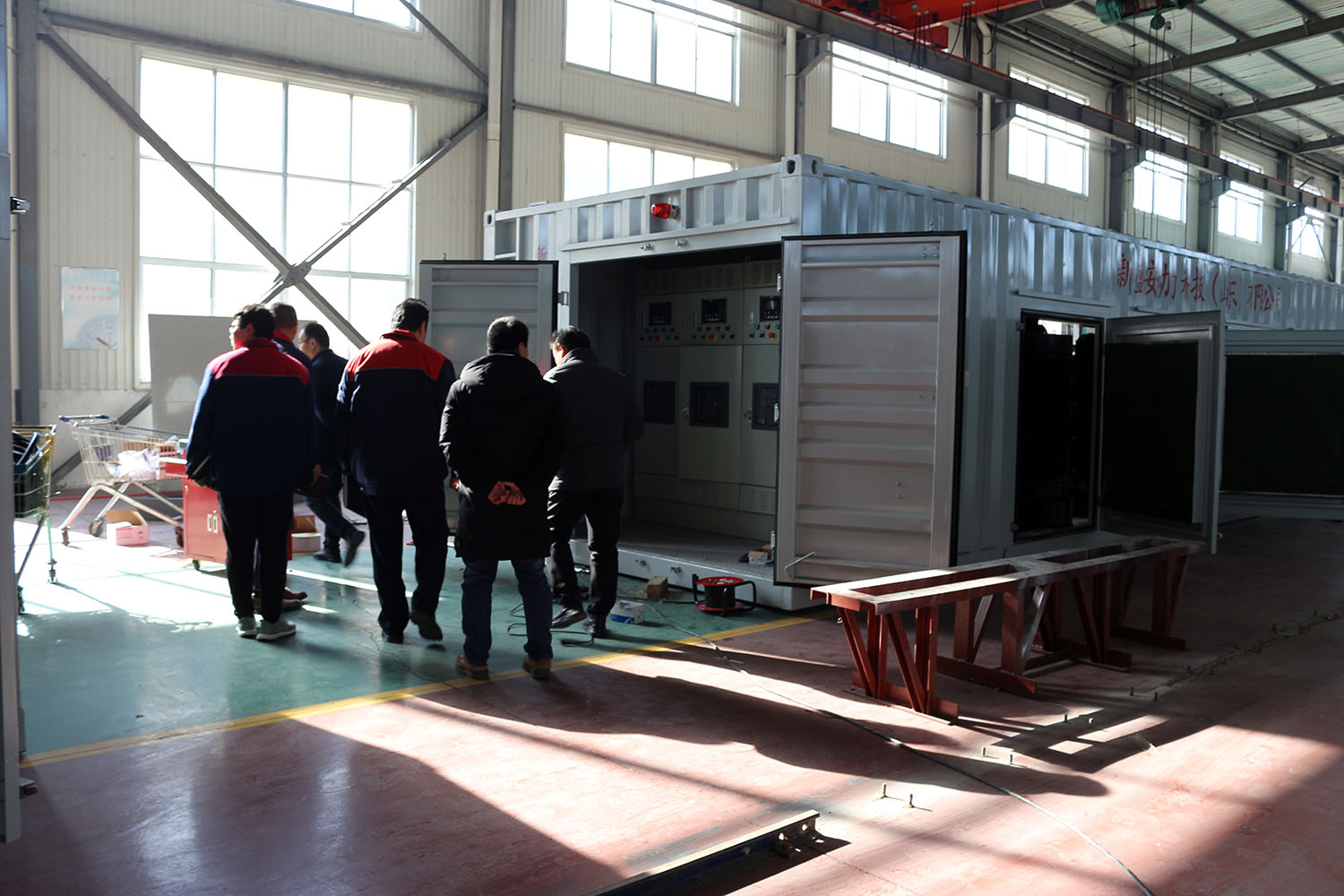 外贸部、内贸部同事及技术总工,陪同客户参观了生产车间及发电机组试验台,经过对客户的相关讲解及下午对厂房的实地考察,客户对我司规模有了初步的了解,客户表示非常满意。